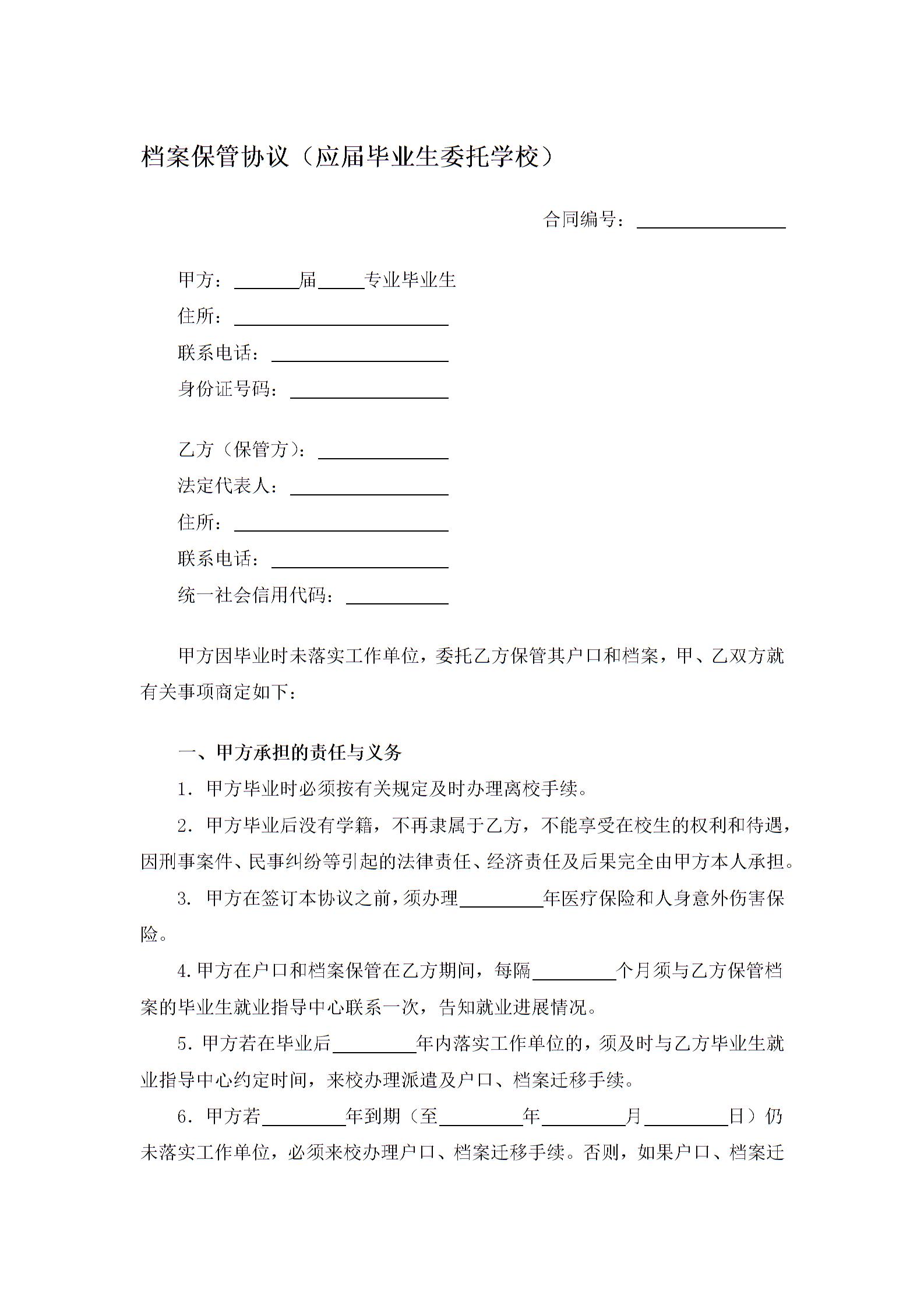 档案保管协议(应届毕业生委托学校)
