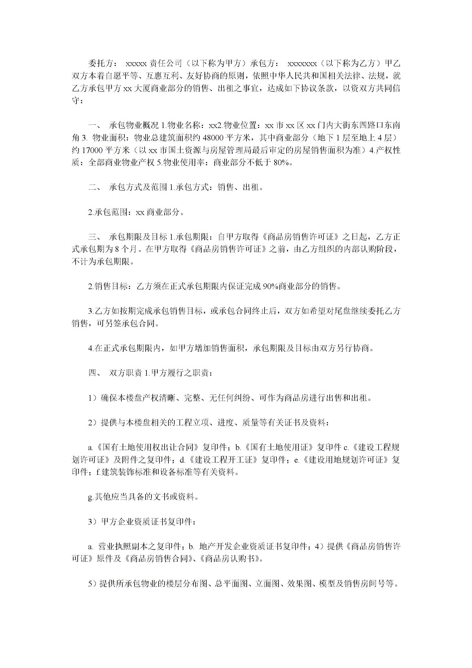 销售承包合同书