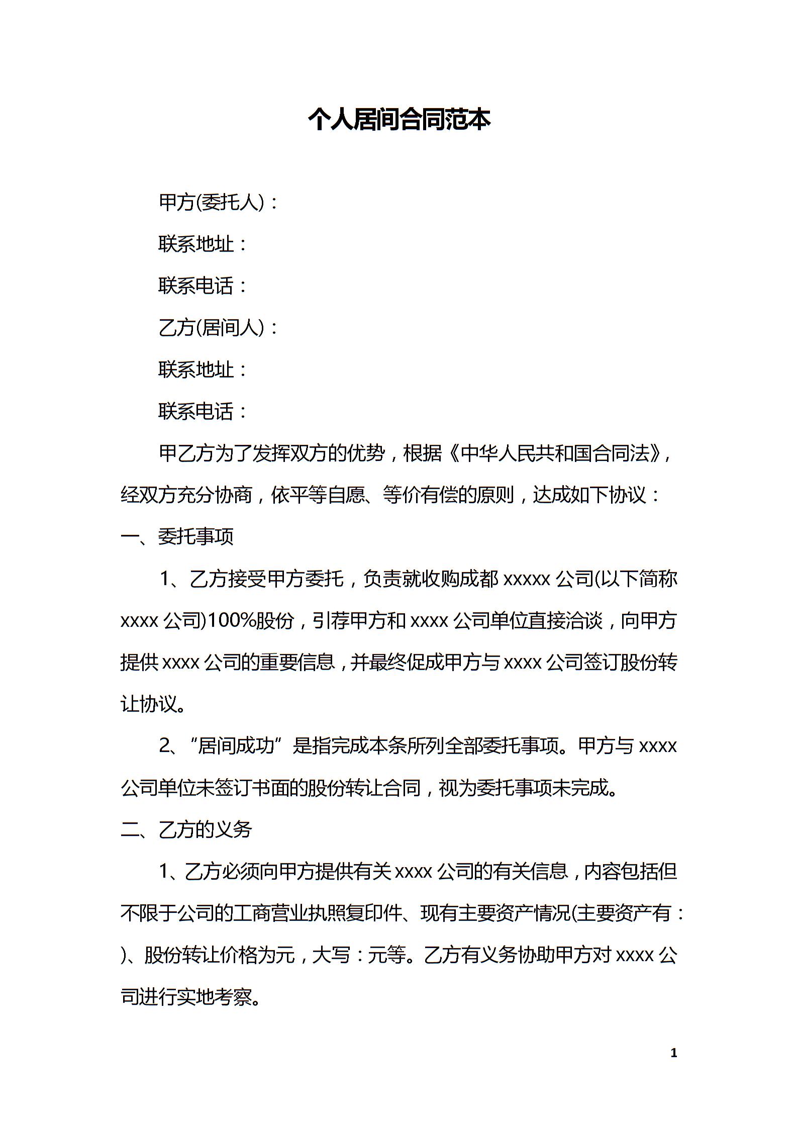 个人居间合同范本