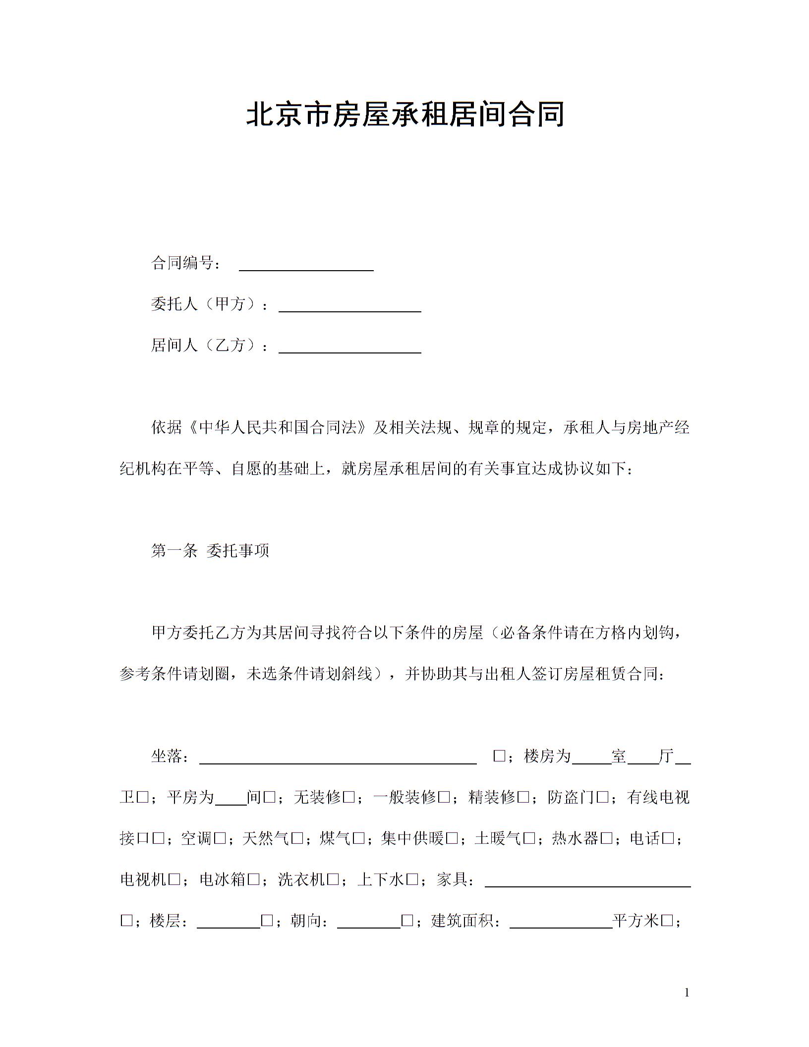 北京市房屋承租居间合同