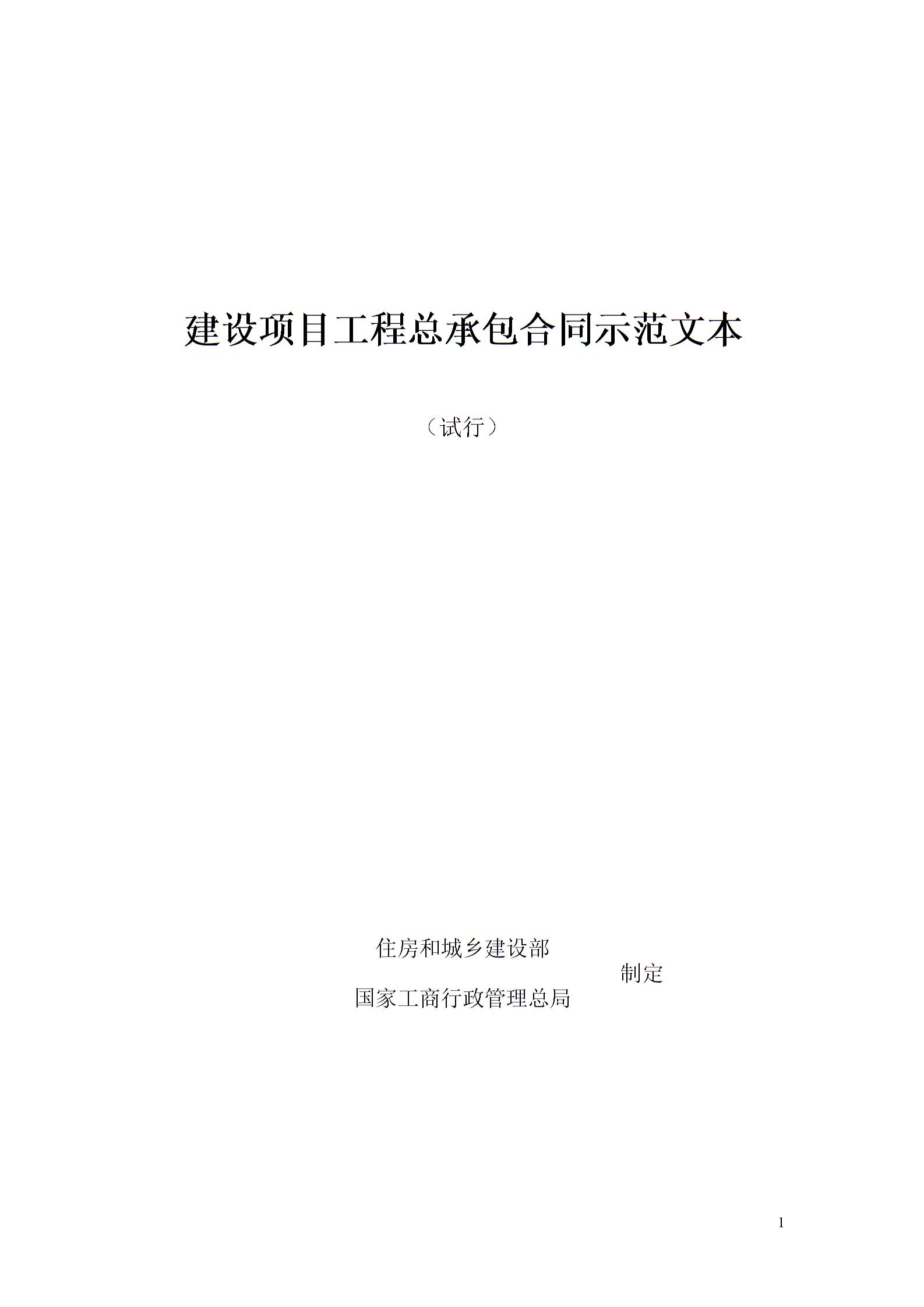 (试行)建设项目工程总承包合同示范文本GF-2011-0216(1)模板