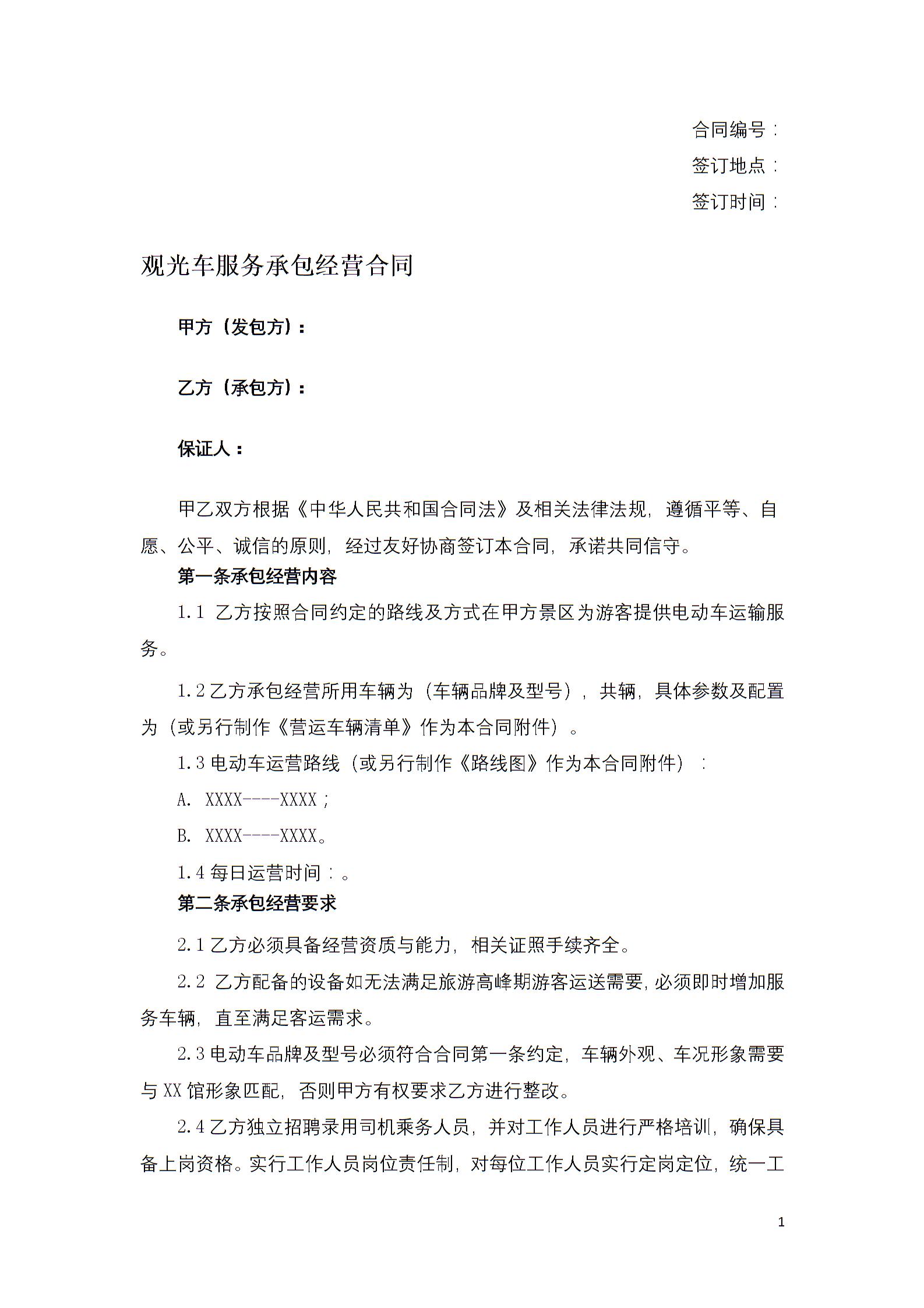 观光车服务承包经营合同