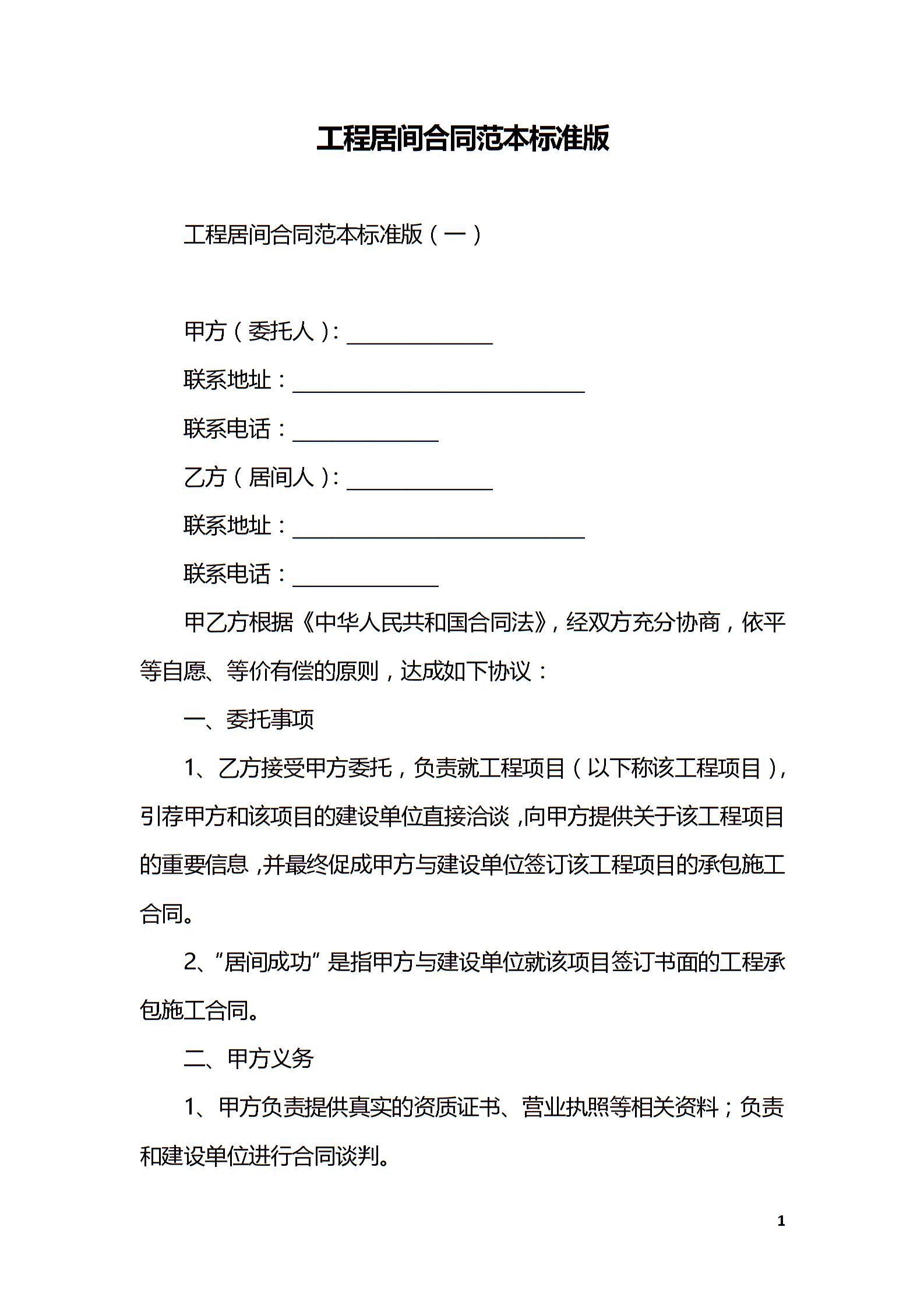 工程居间合同范本标准版