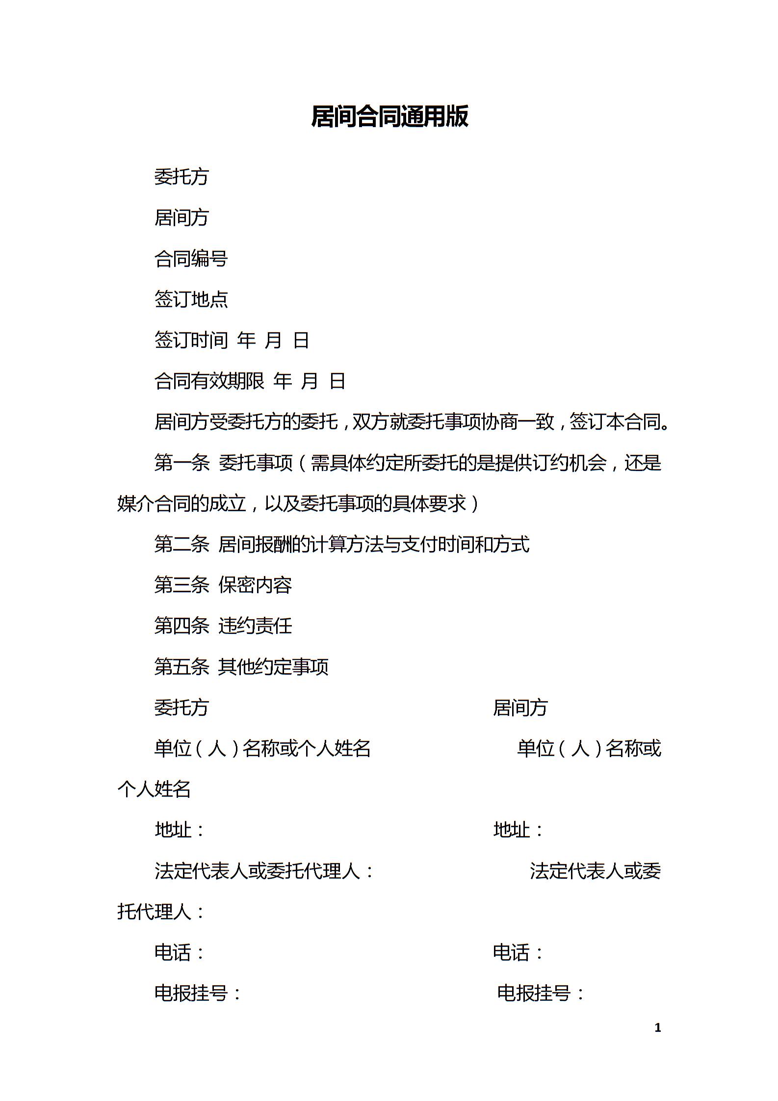居间合同通用版