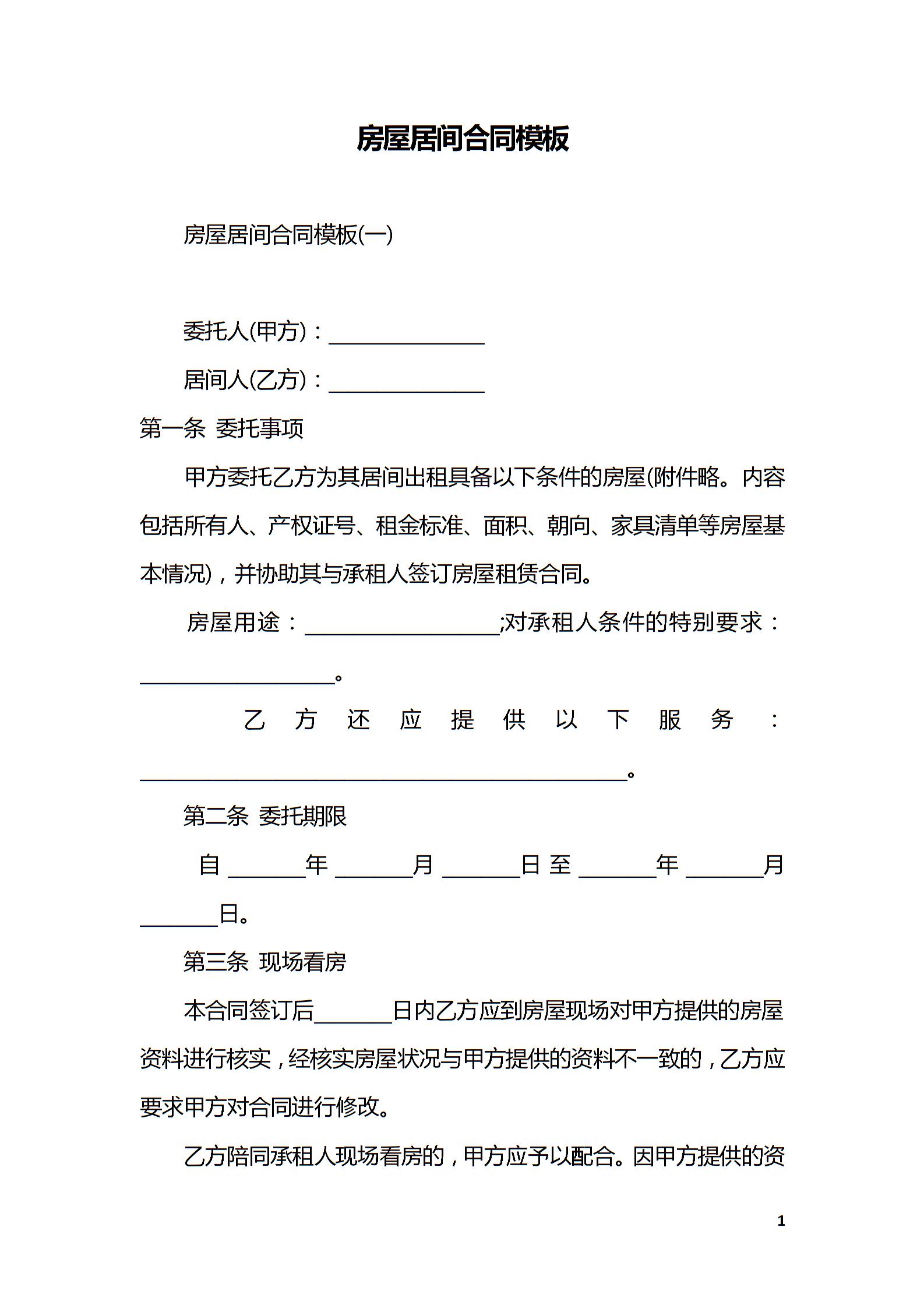 房屋居间合同模板