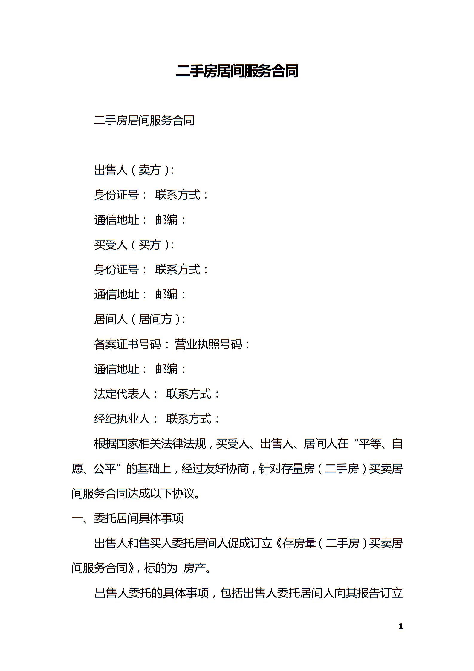 二手房居间服务合同