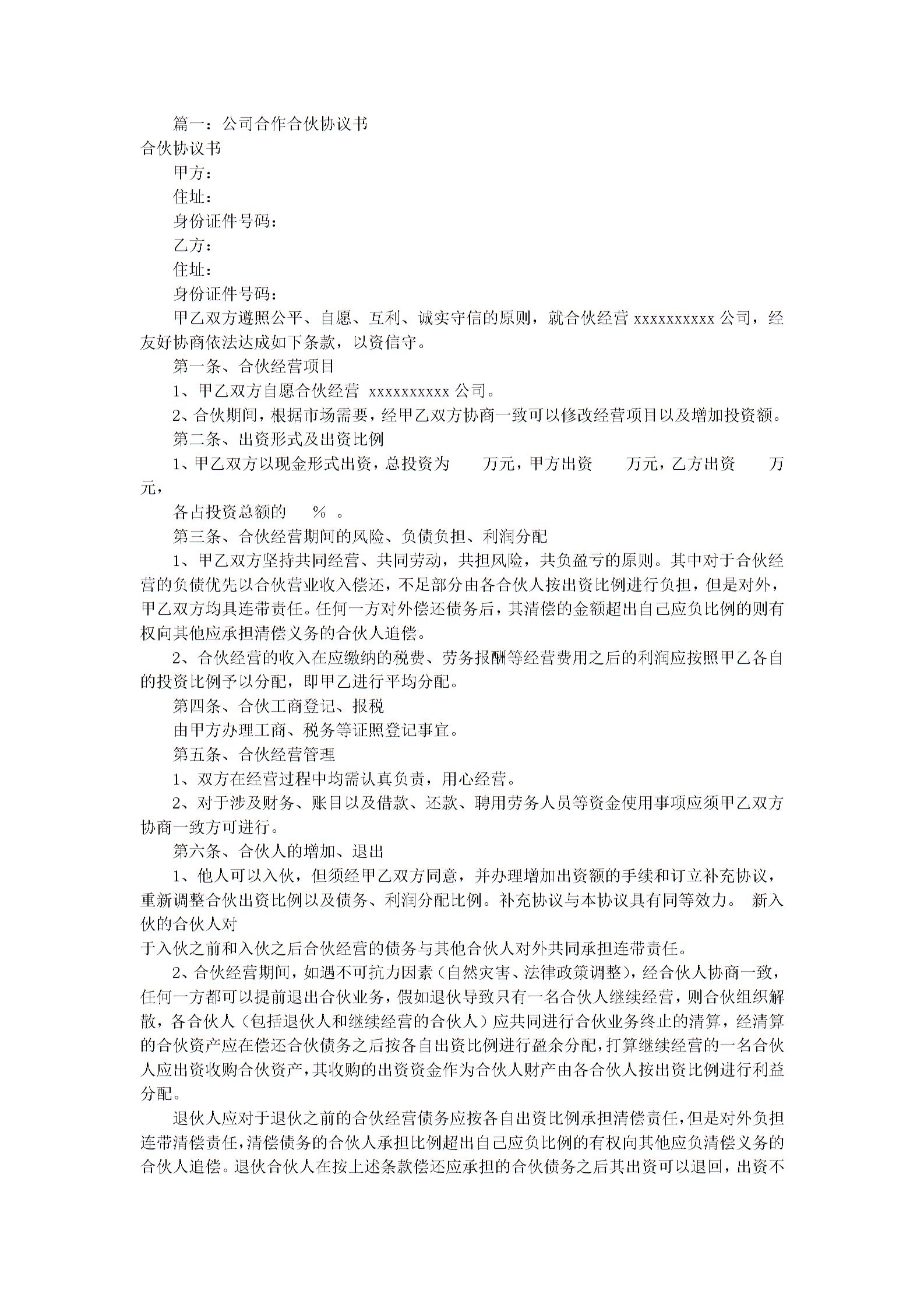公司合作协议书