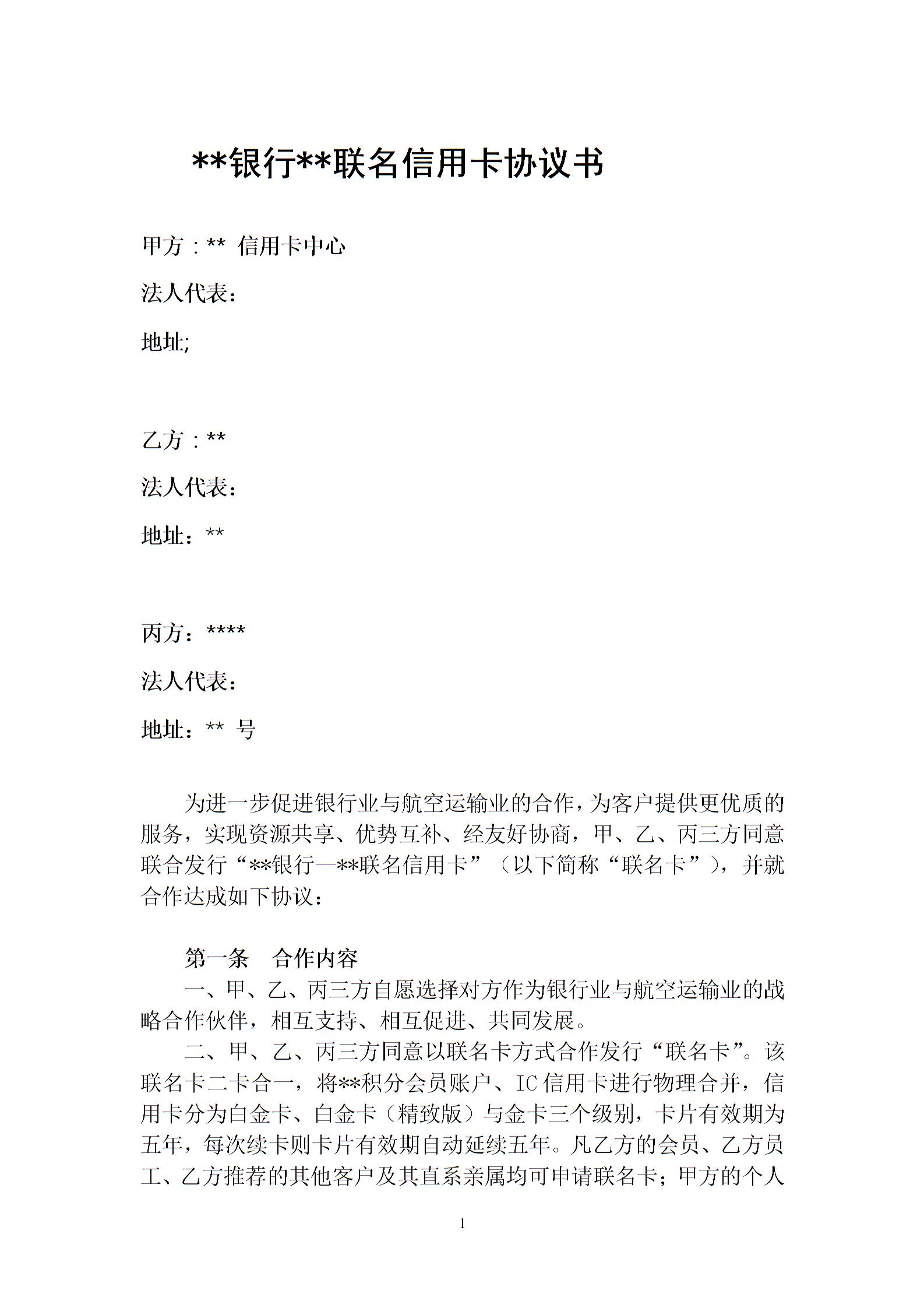 SL009-银行联名卡合作协议