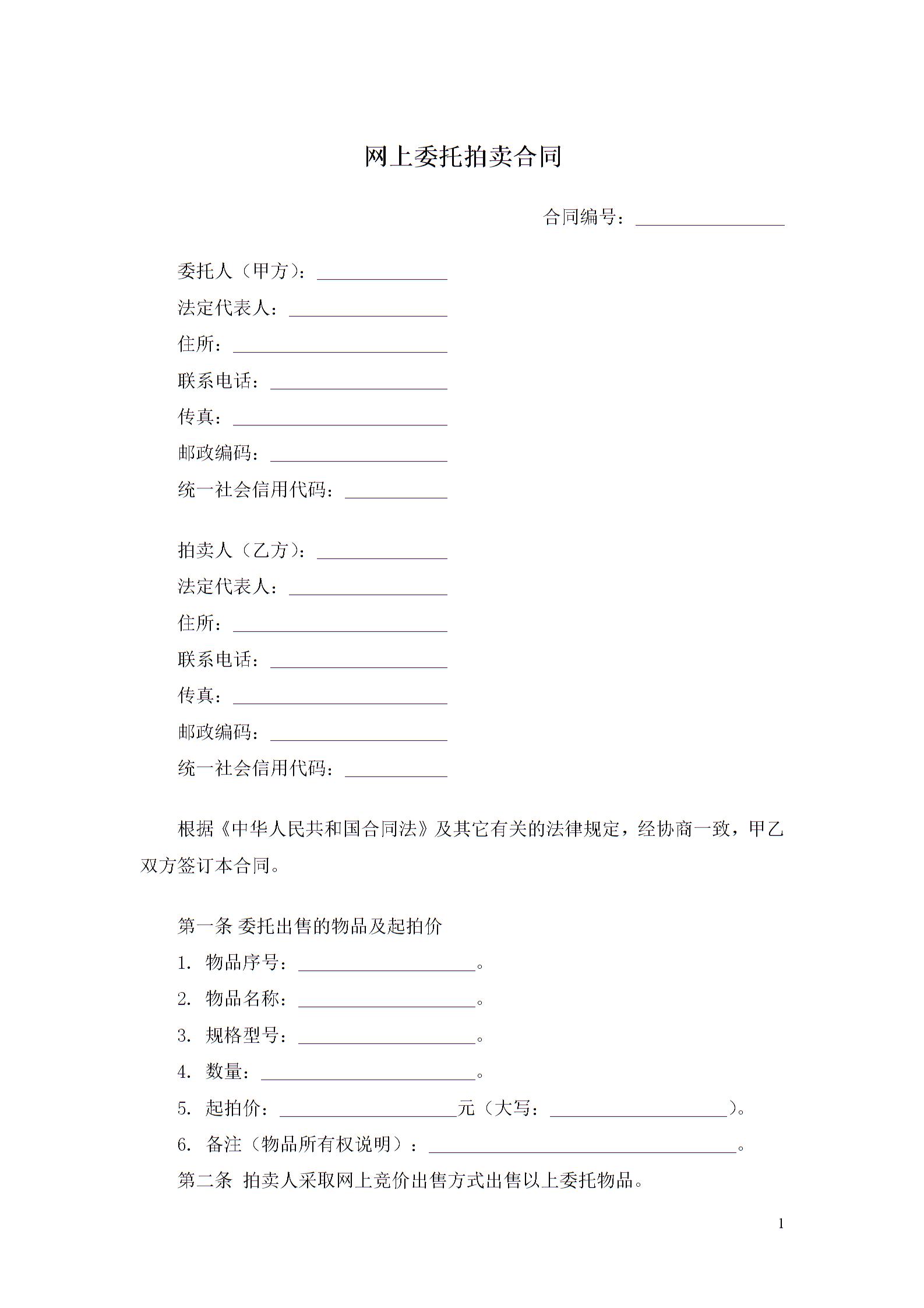 网上委托拍卖合同