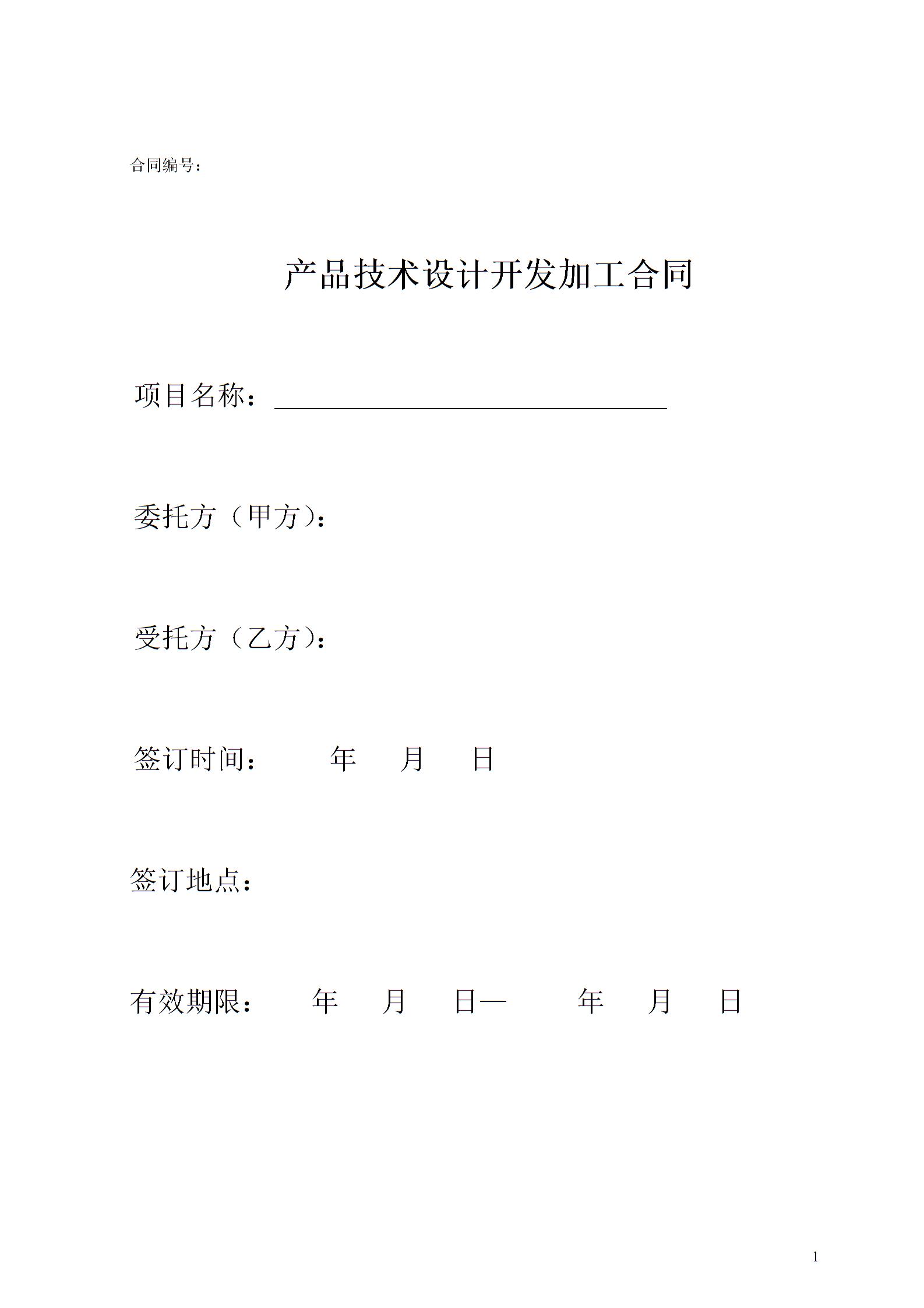 产品技术设计开发加工委托合同范本模板