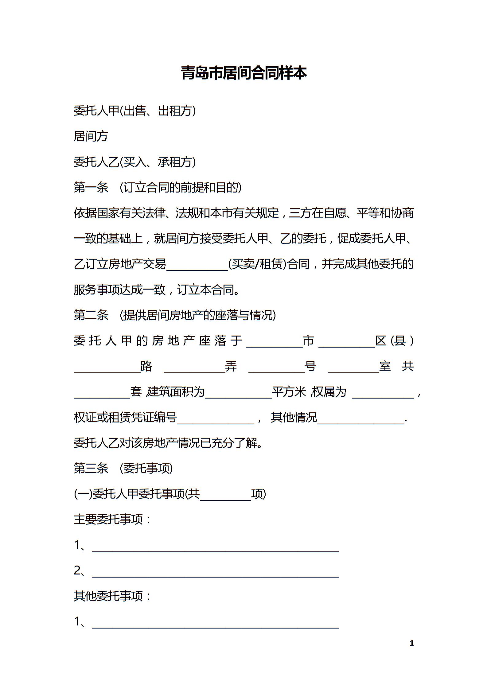 青岛市居间合同样本