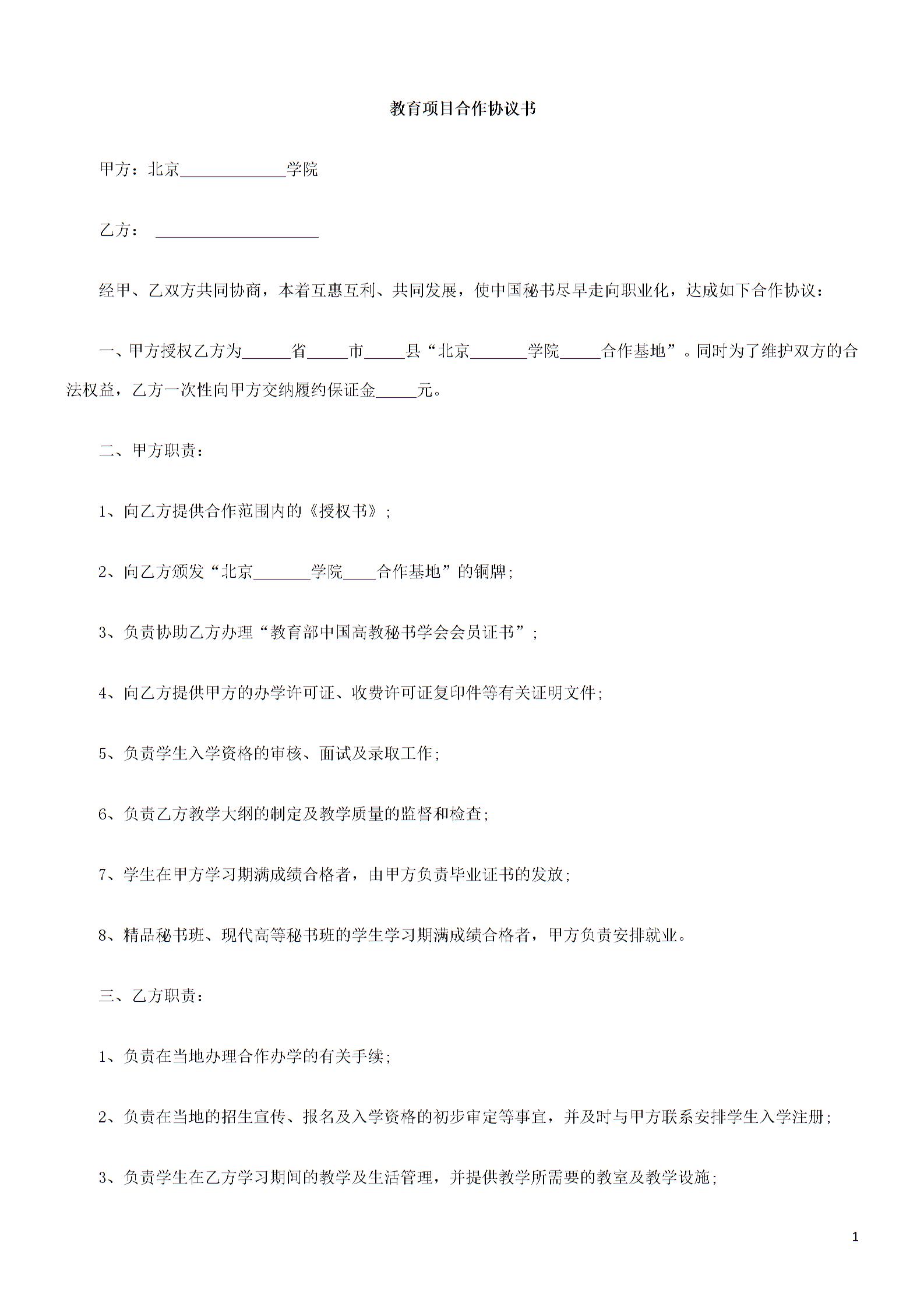 教育项目合作协议书模板