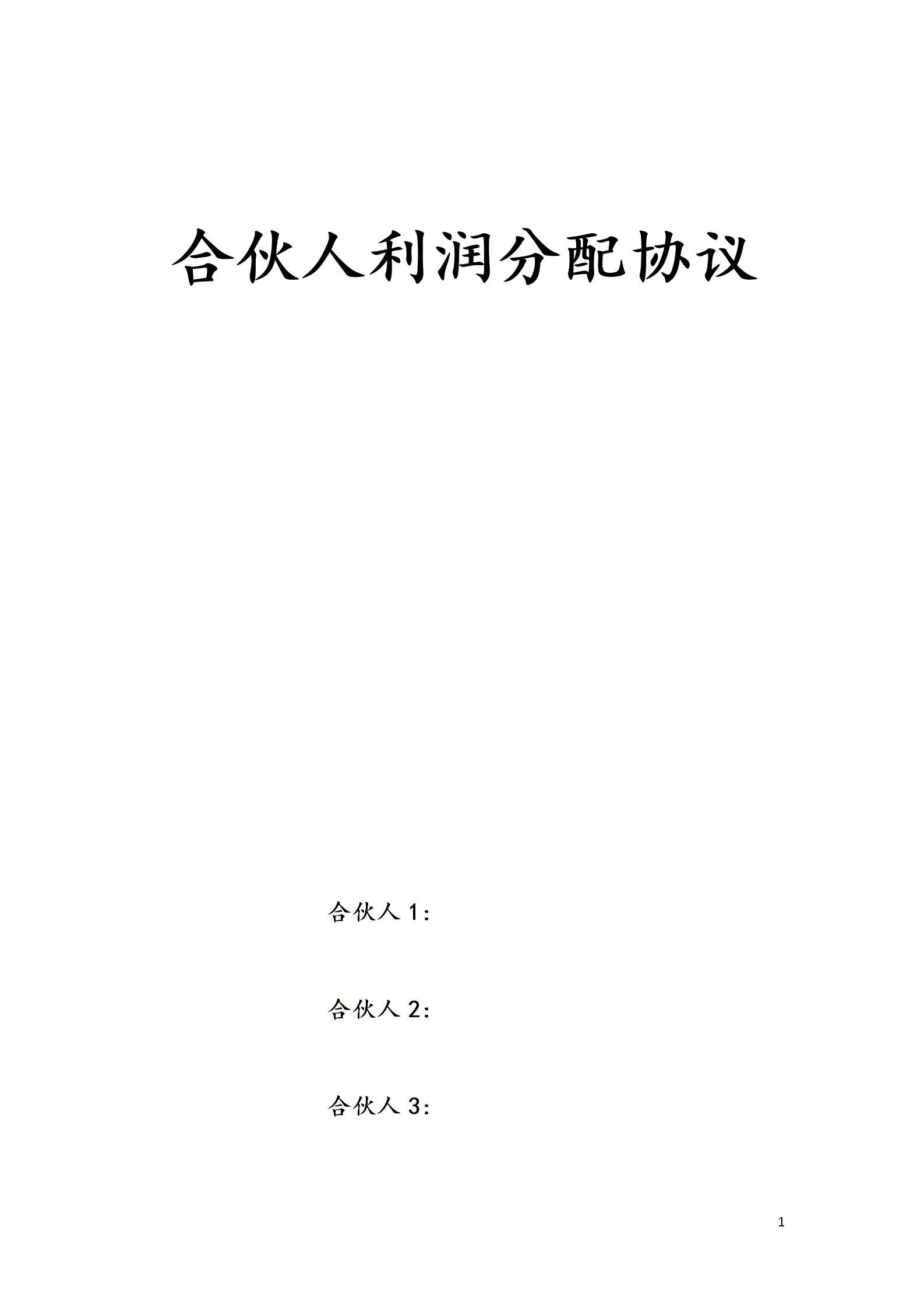 合伙人利润分配协议模板