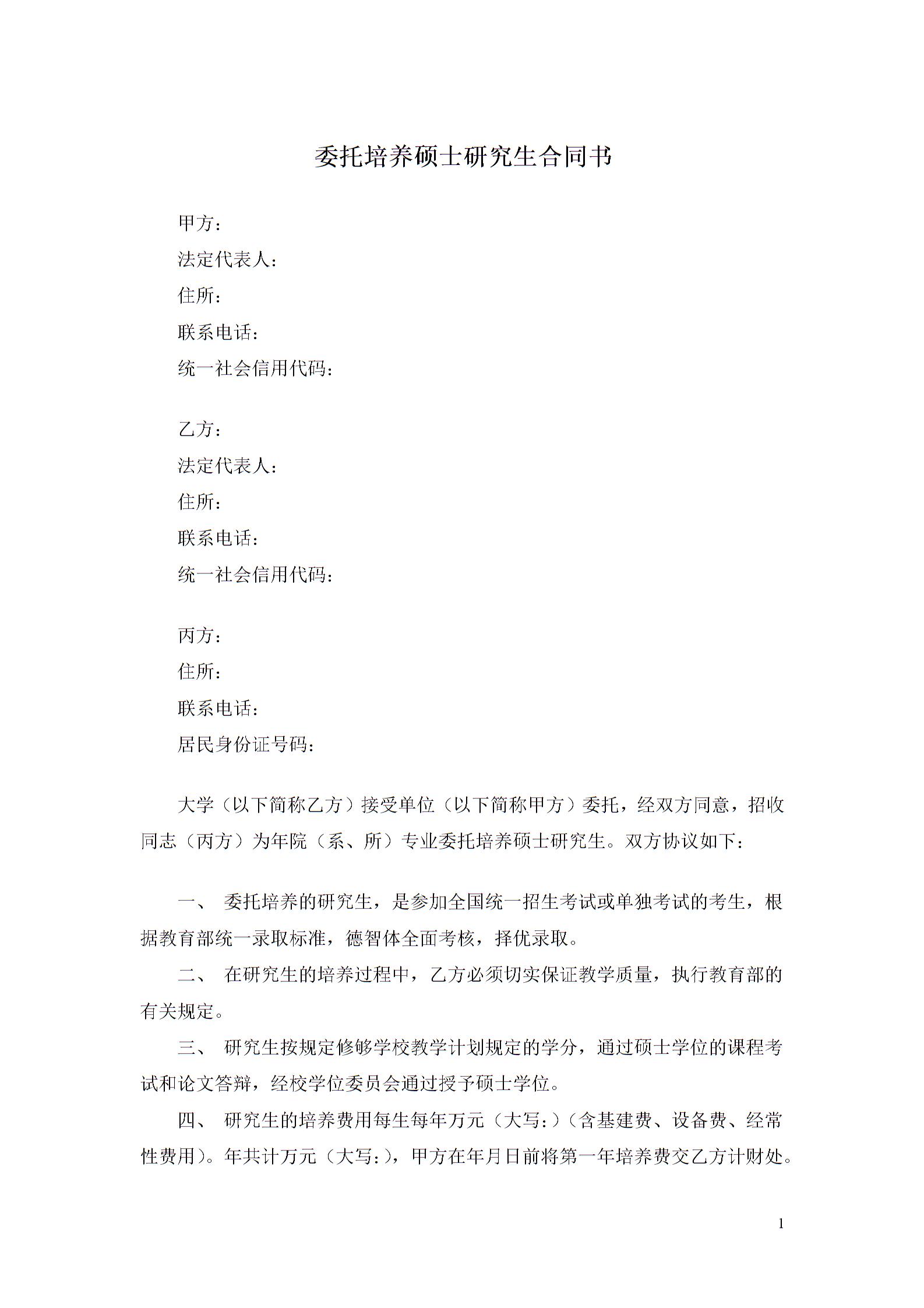 委托培养硕士研究生合同书