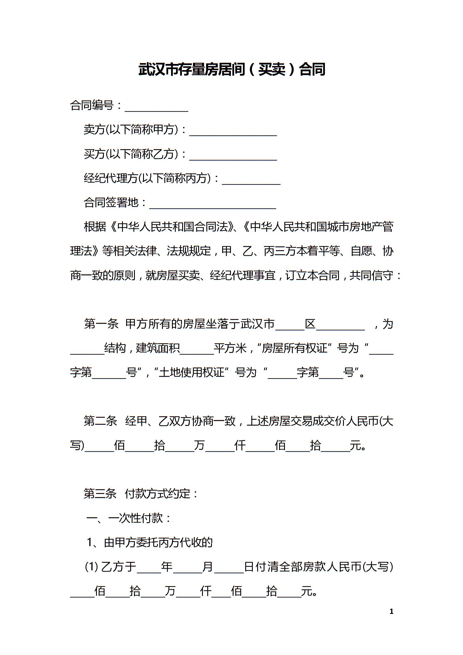 武汉市存量房居间(买卖)合同