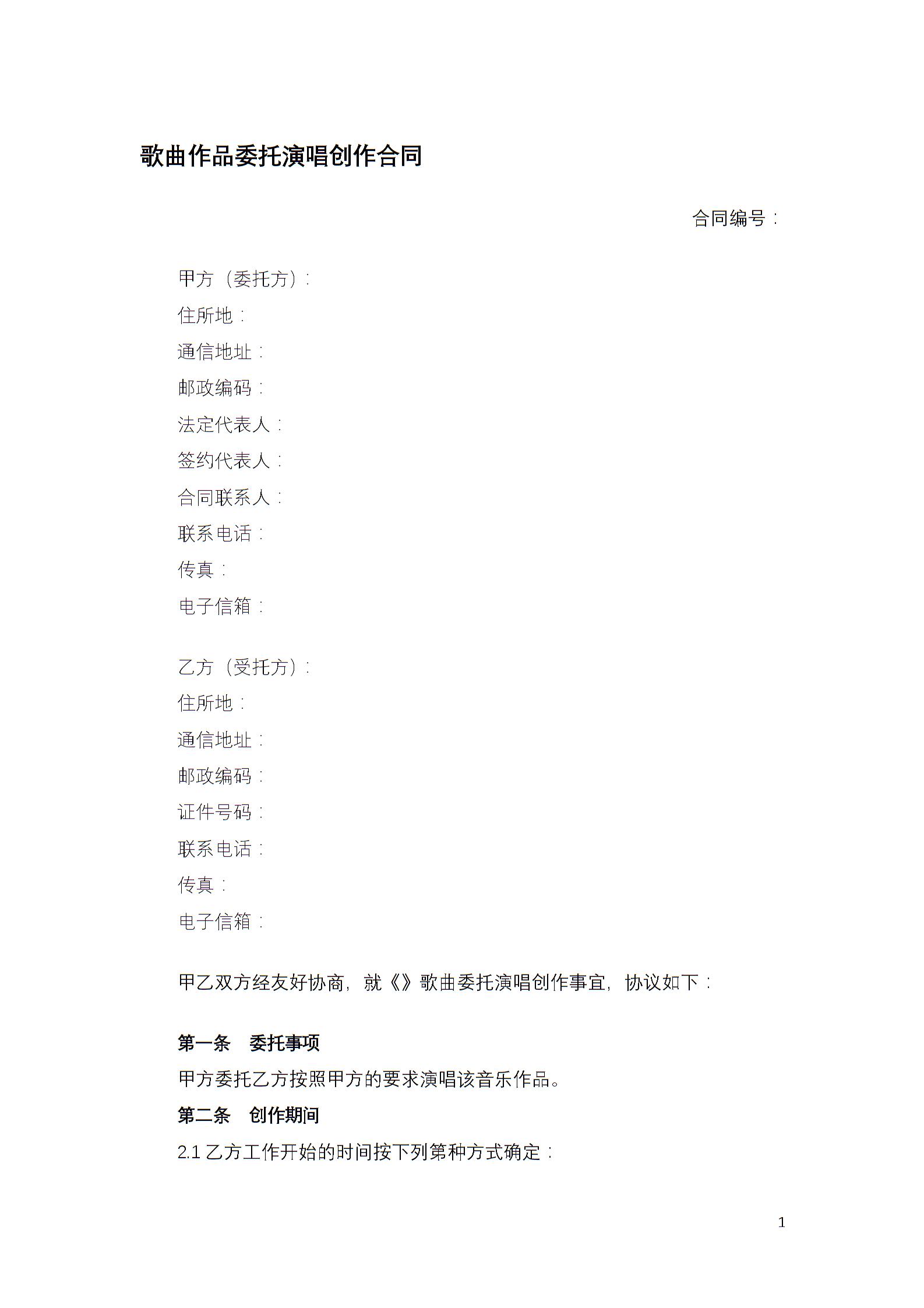 歌曲作品委托演唱创作合同