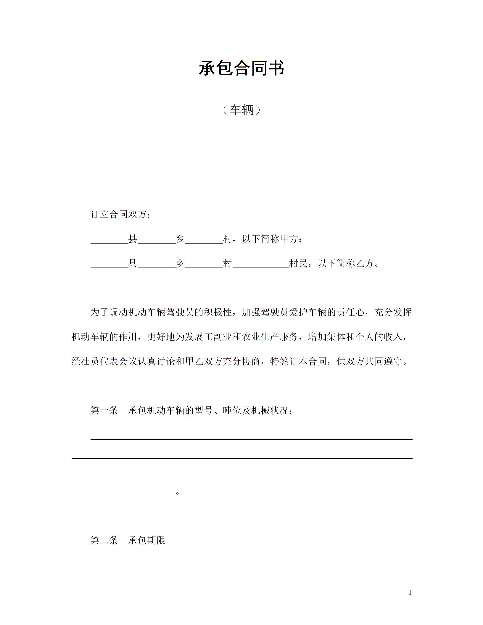 承包合同书(车辆)