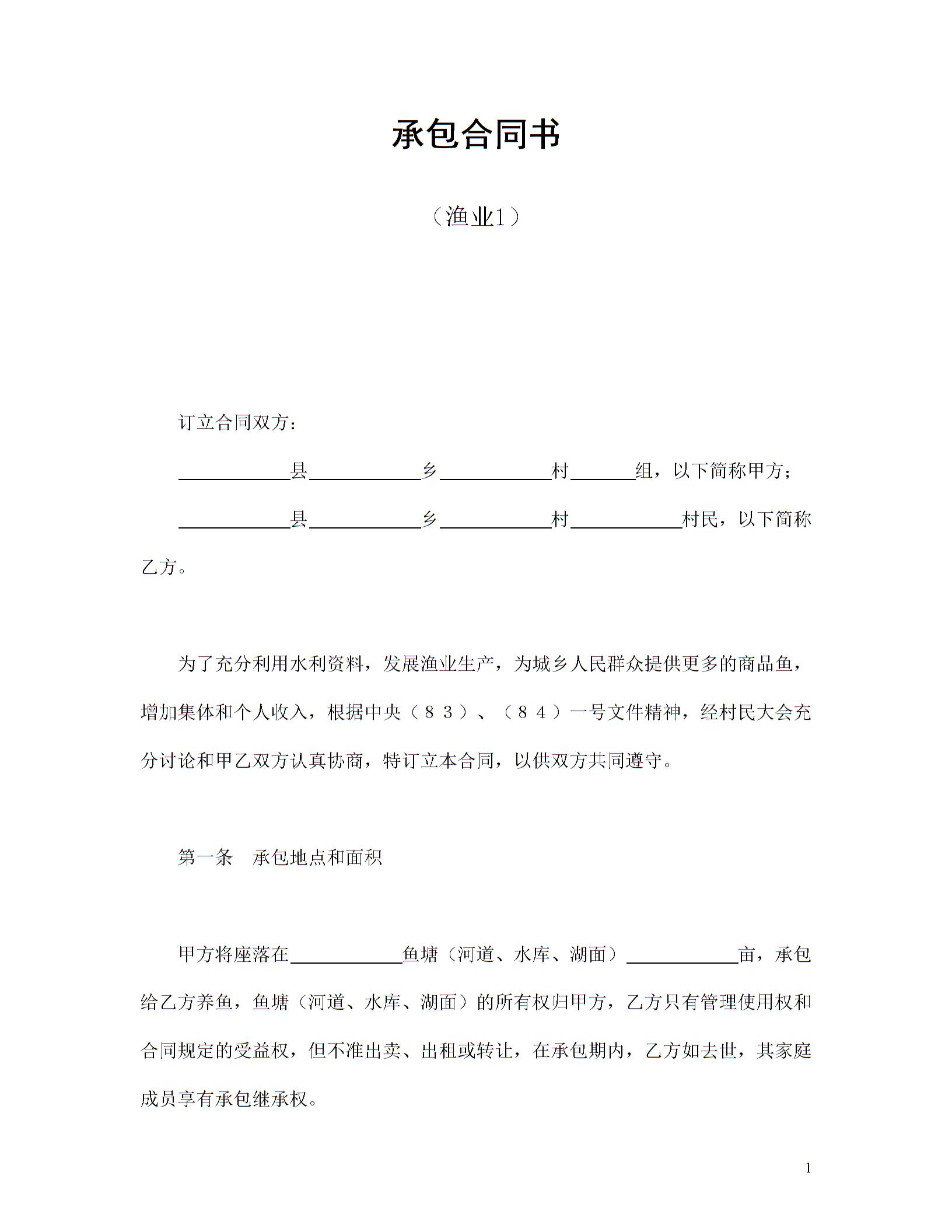 承包合同书(渔业1)