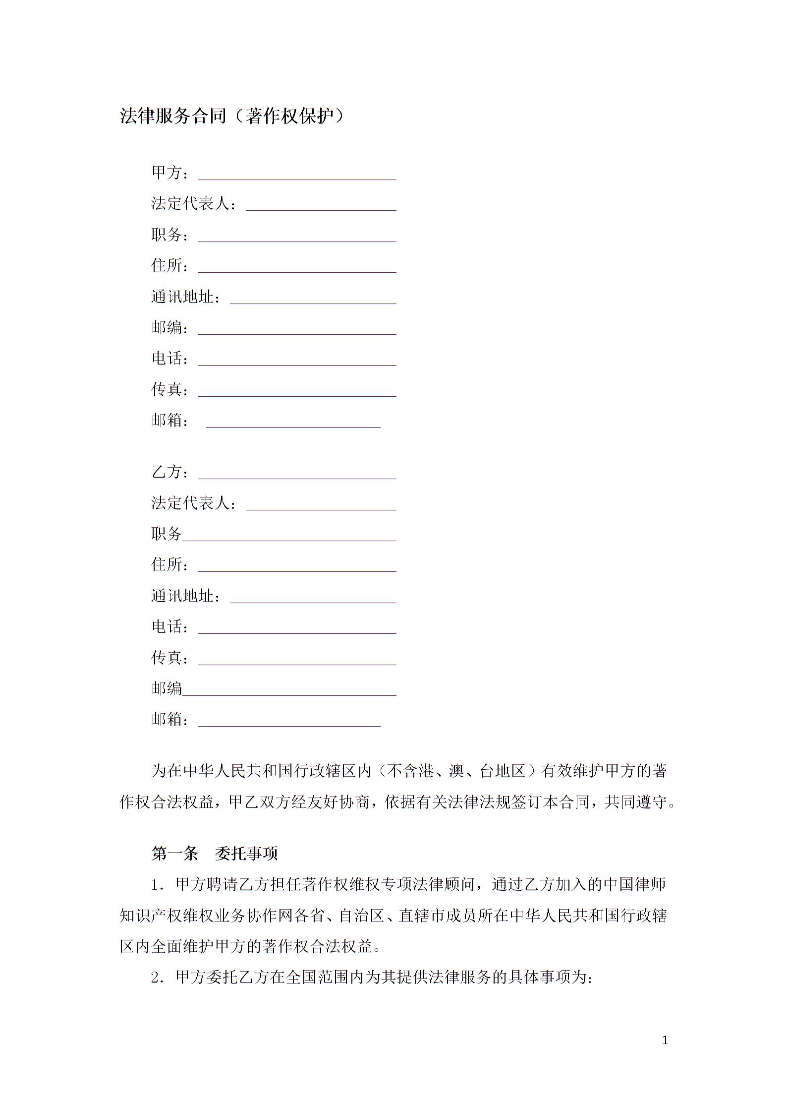 法律服务合同(著作权保护)