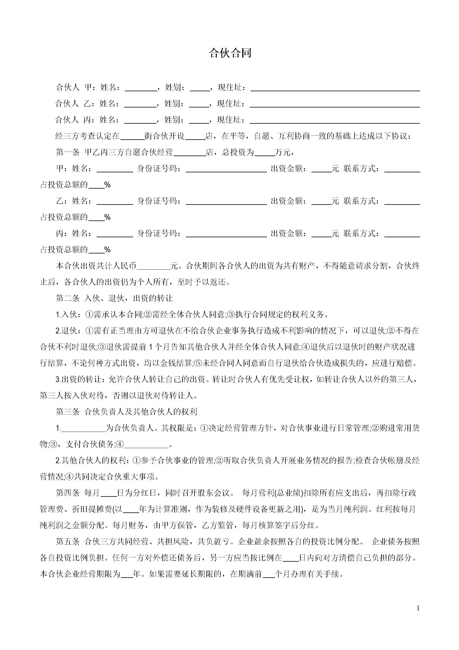 合伙协议(合伙合同)