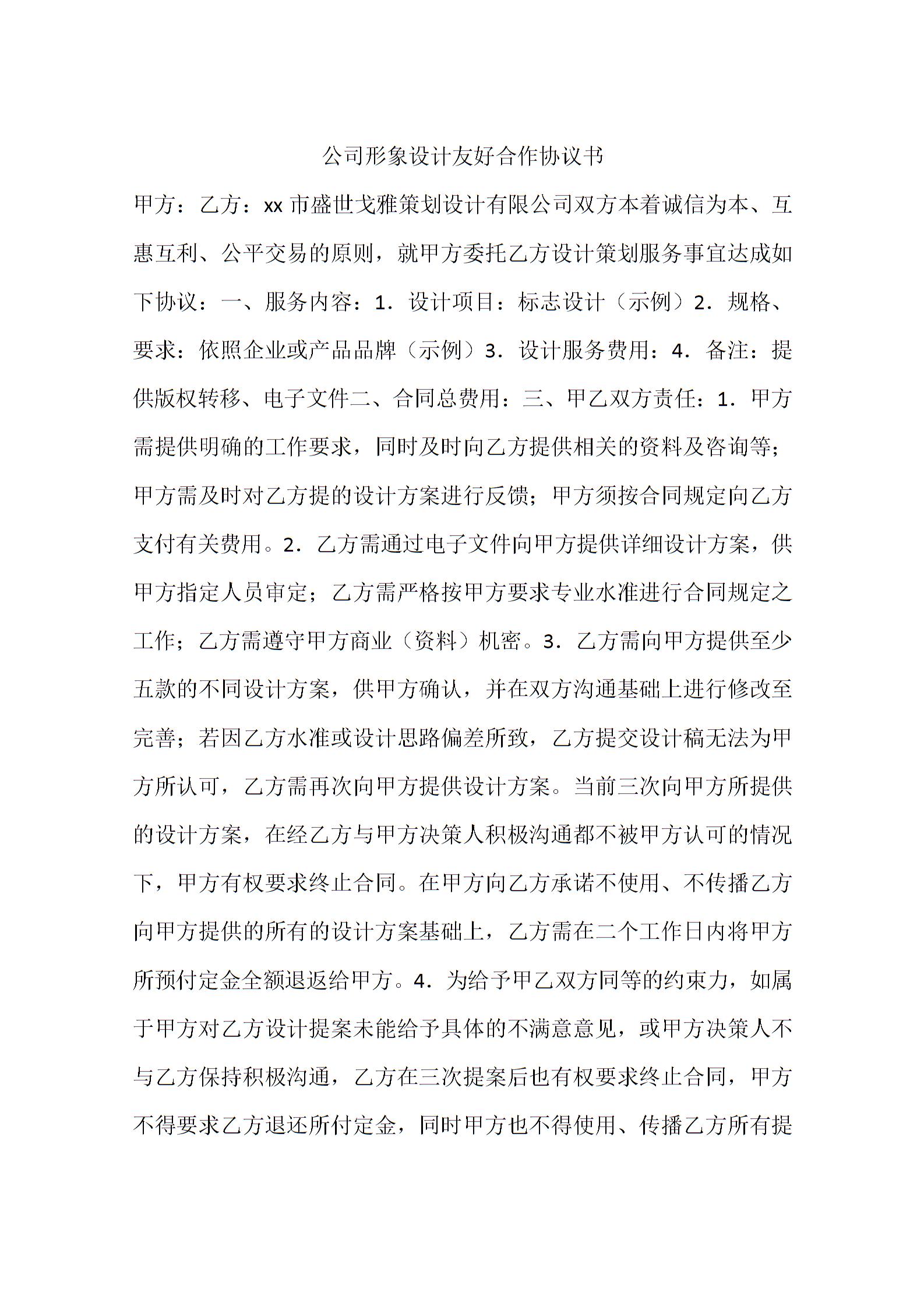 公司形象设计友好合作协议书