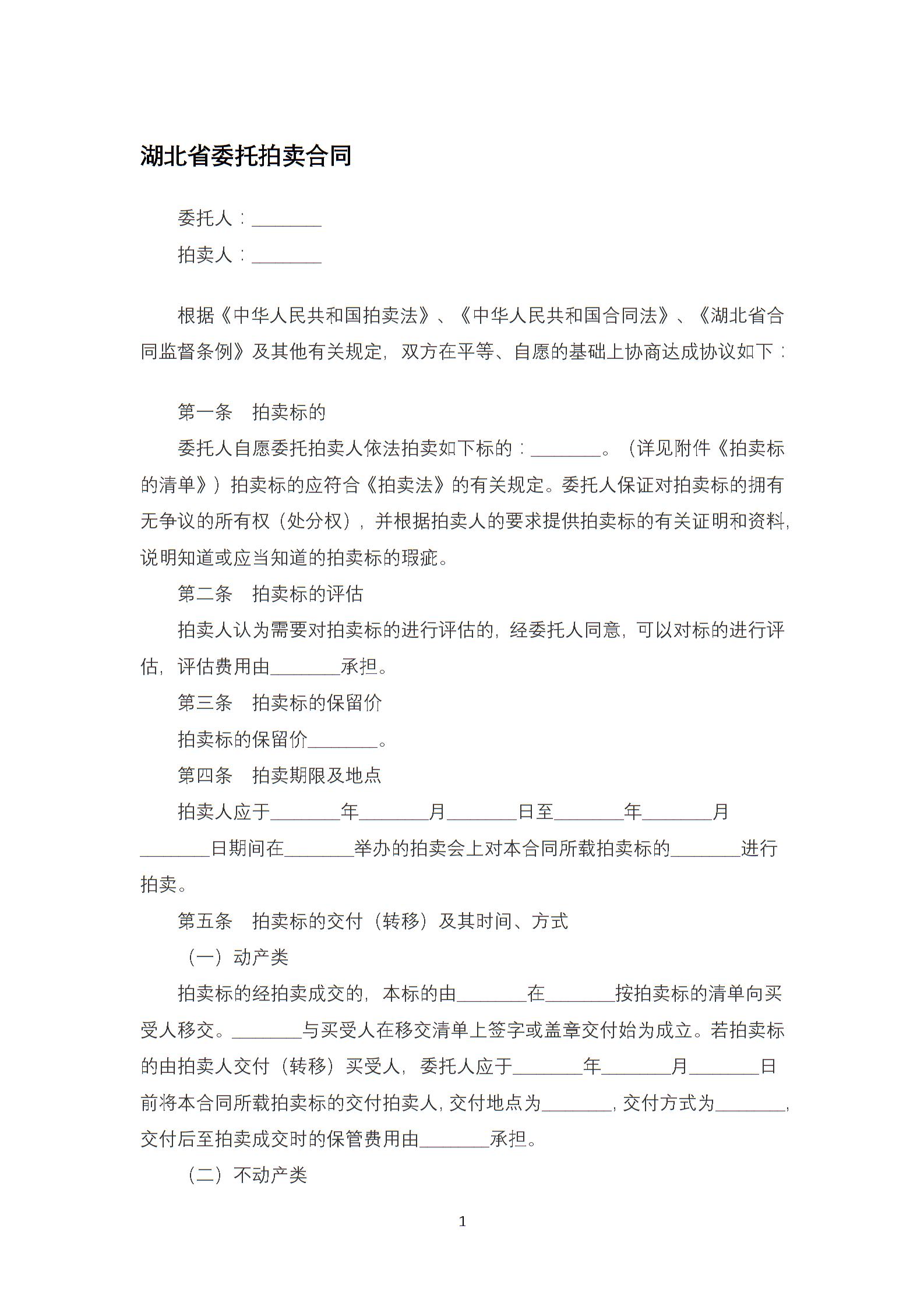 湖北省委托拍卖合同