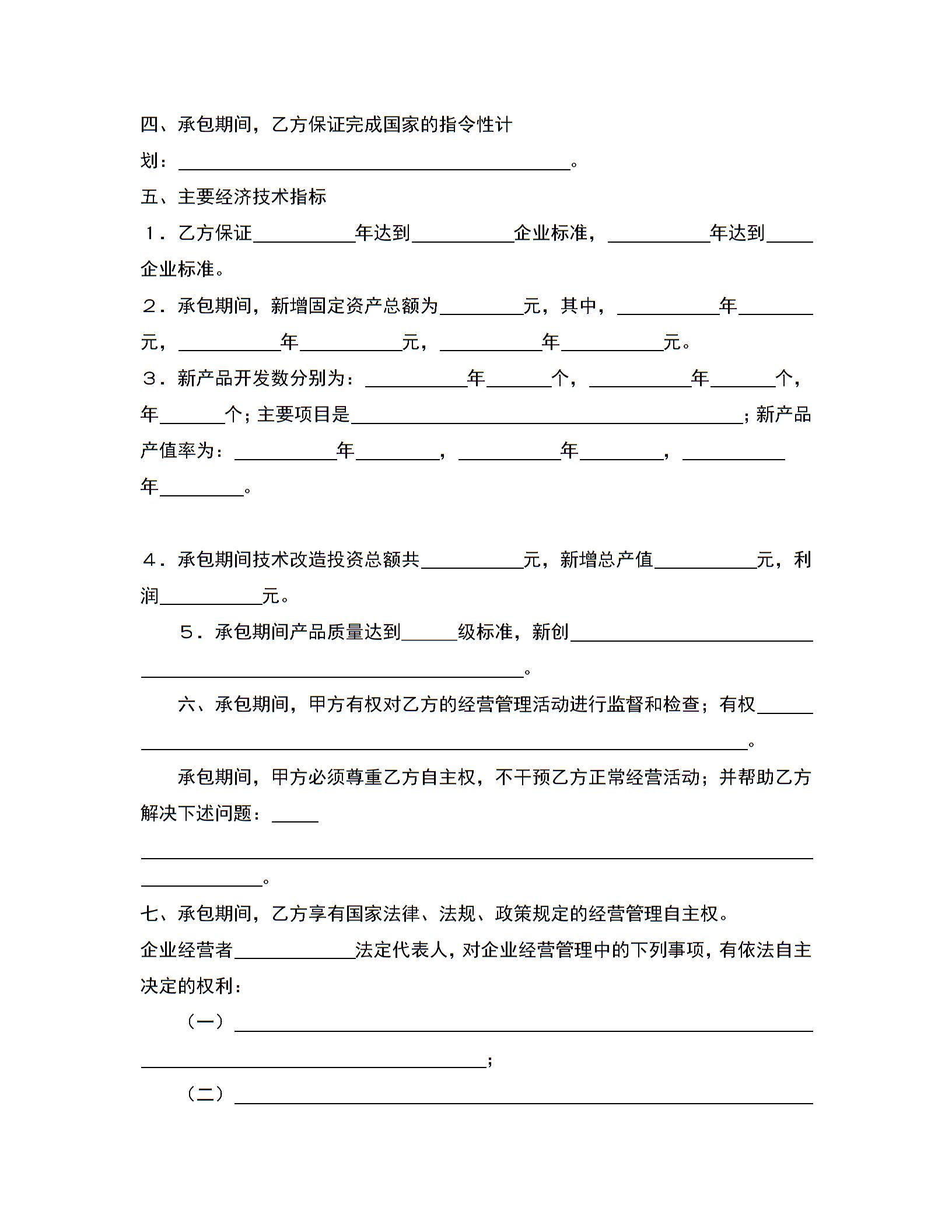 企业承包合同-上缴利润递增包干