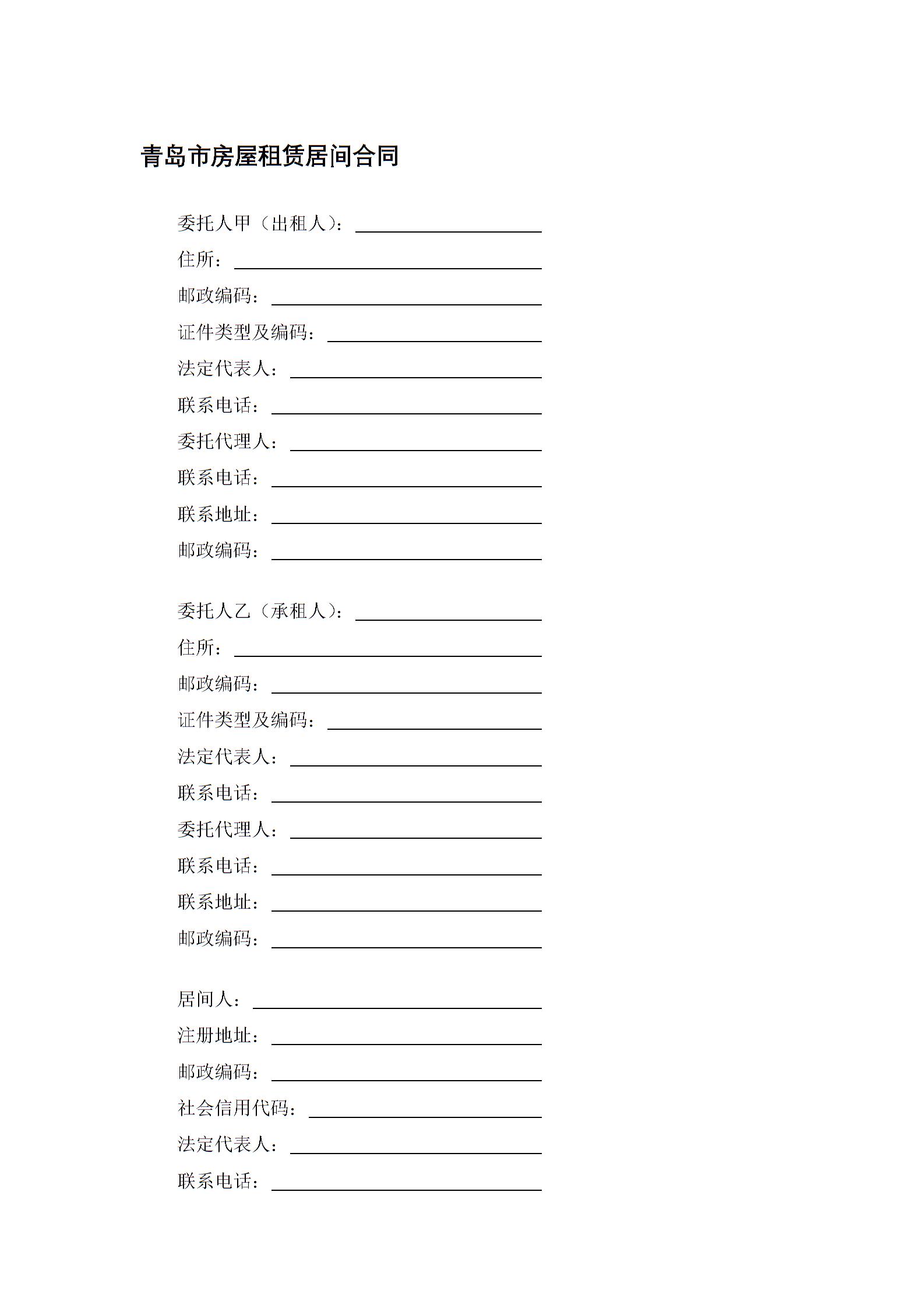 青岛市房屋租赁居间合同