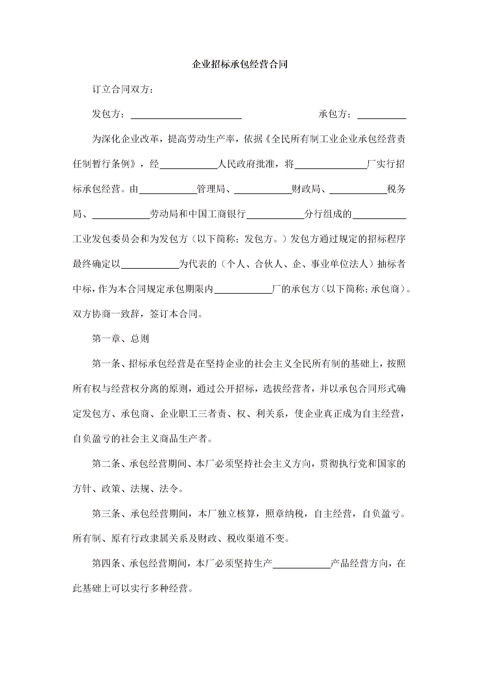 企业招标承包经营合同3
