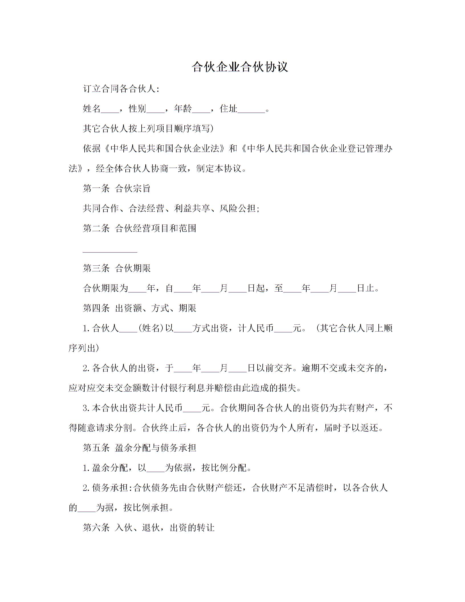 合伙企业合伙协议