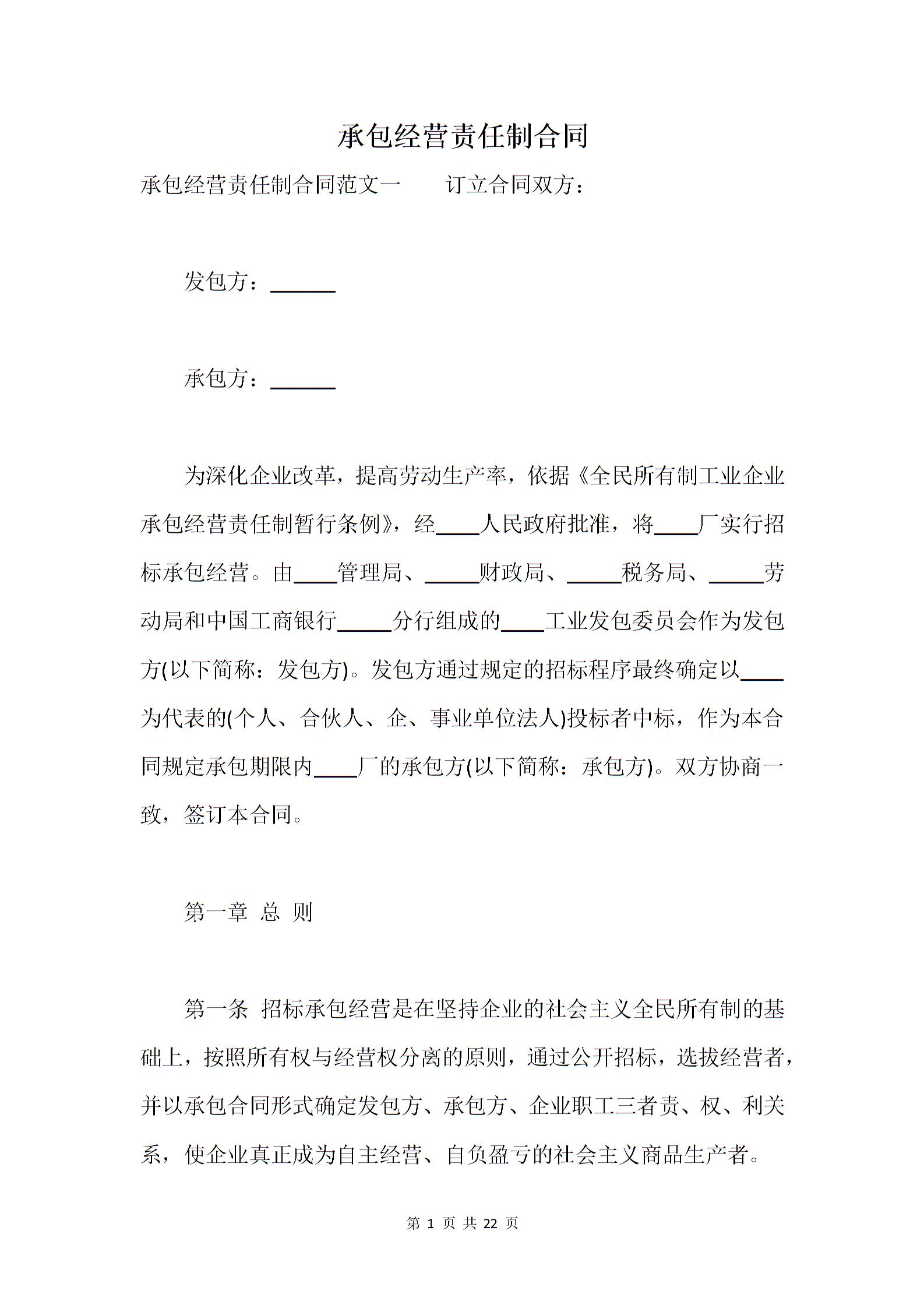 承包经营责任制合同