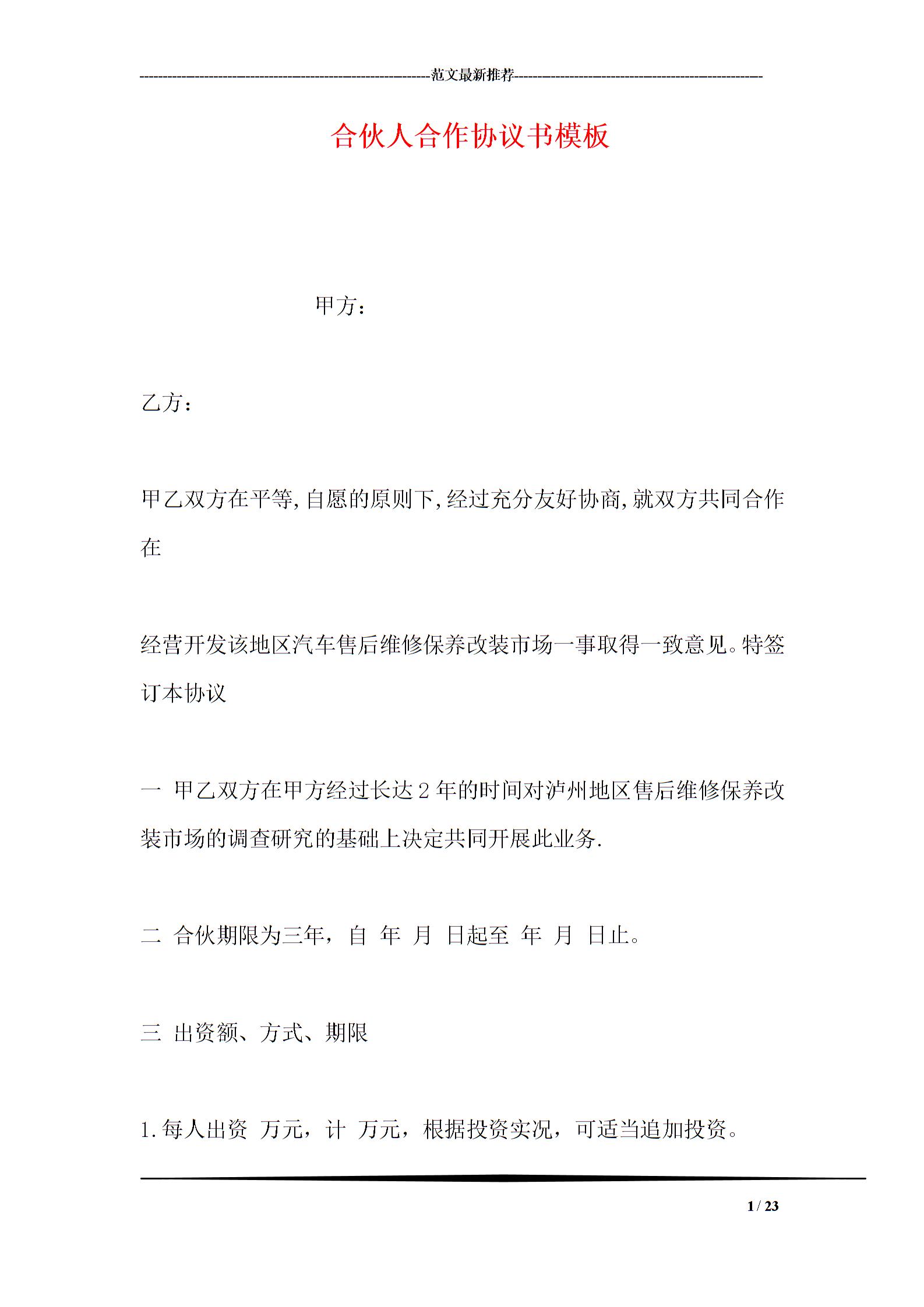 更多合作协议下载
