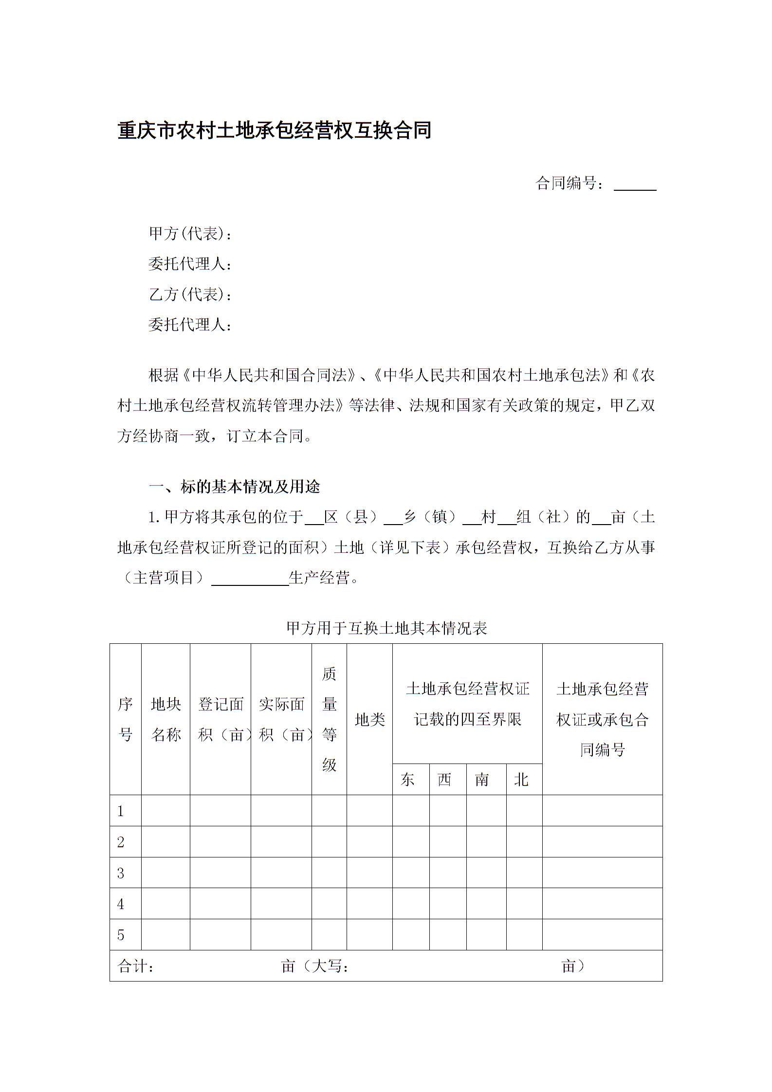 重庆市农村土地承包经营权互换合同