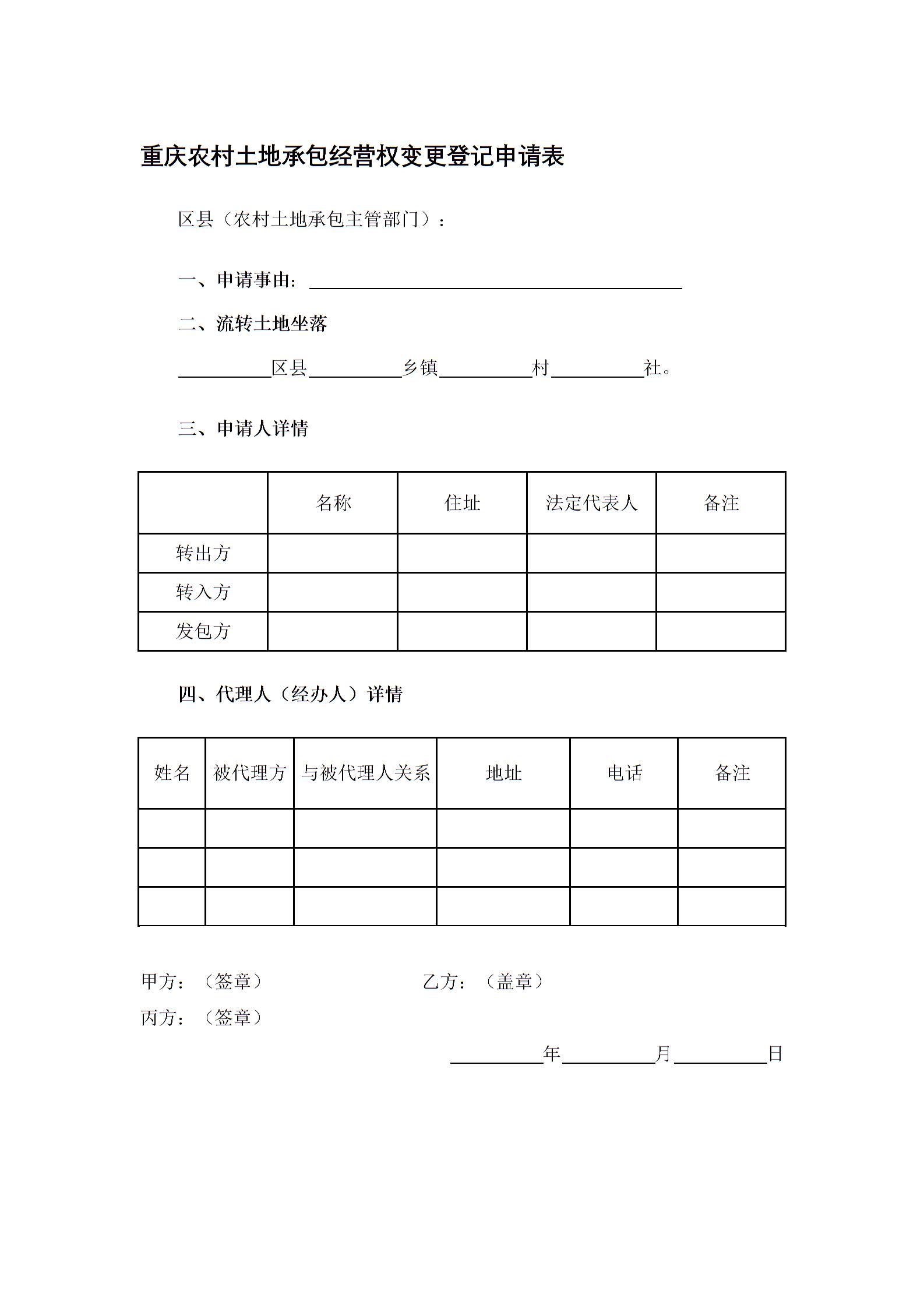 重庆农村土地承包经营权变更登记申请表