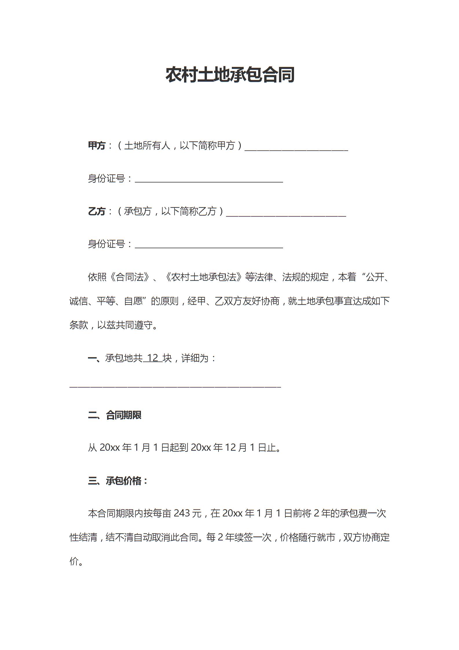 农村土地承包合同(简约版)