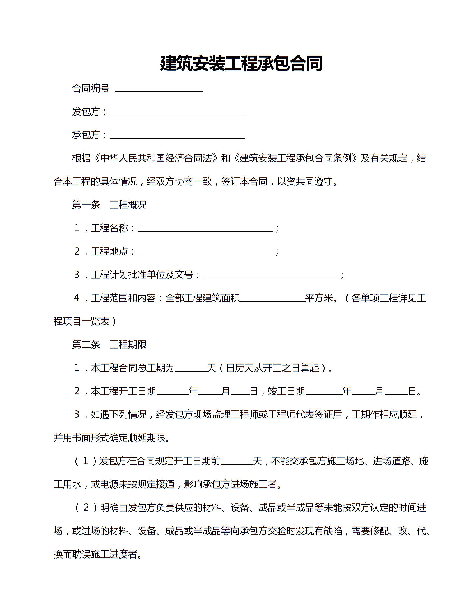 建筑安装工程承包合同范本1
