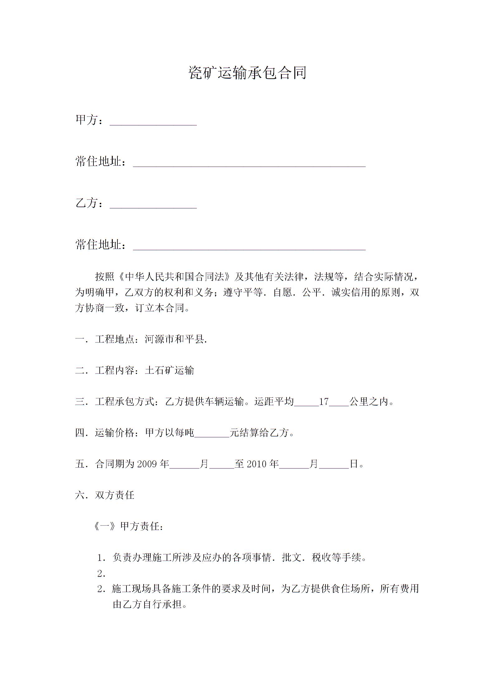 瓷矿运输承包合同3
