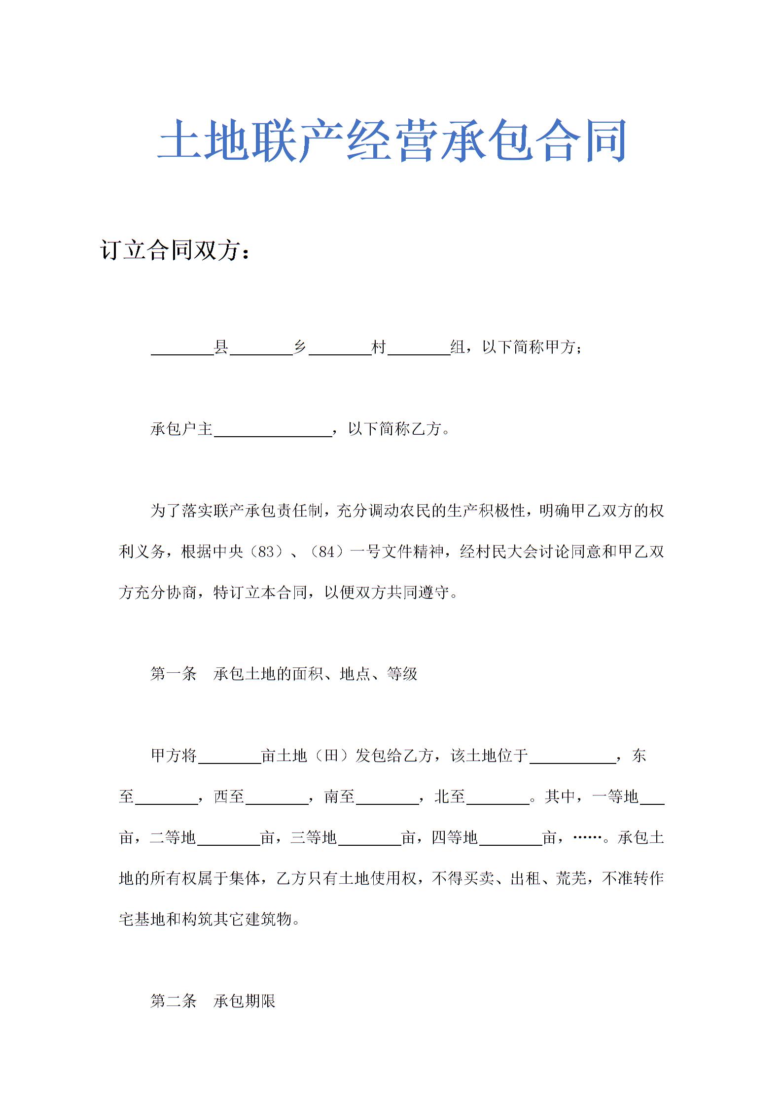 土地联产经营承包合同示范文本