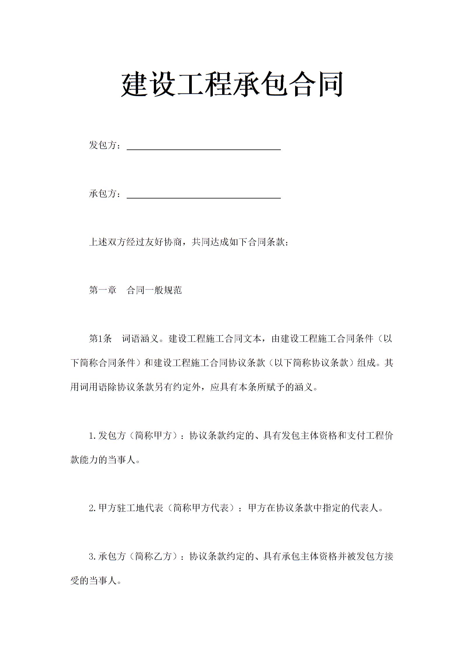 建设工程承包合同通用范本