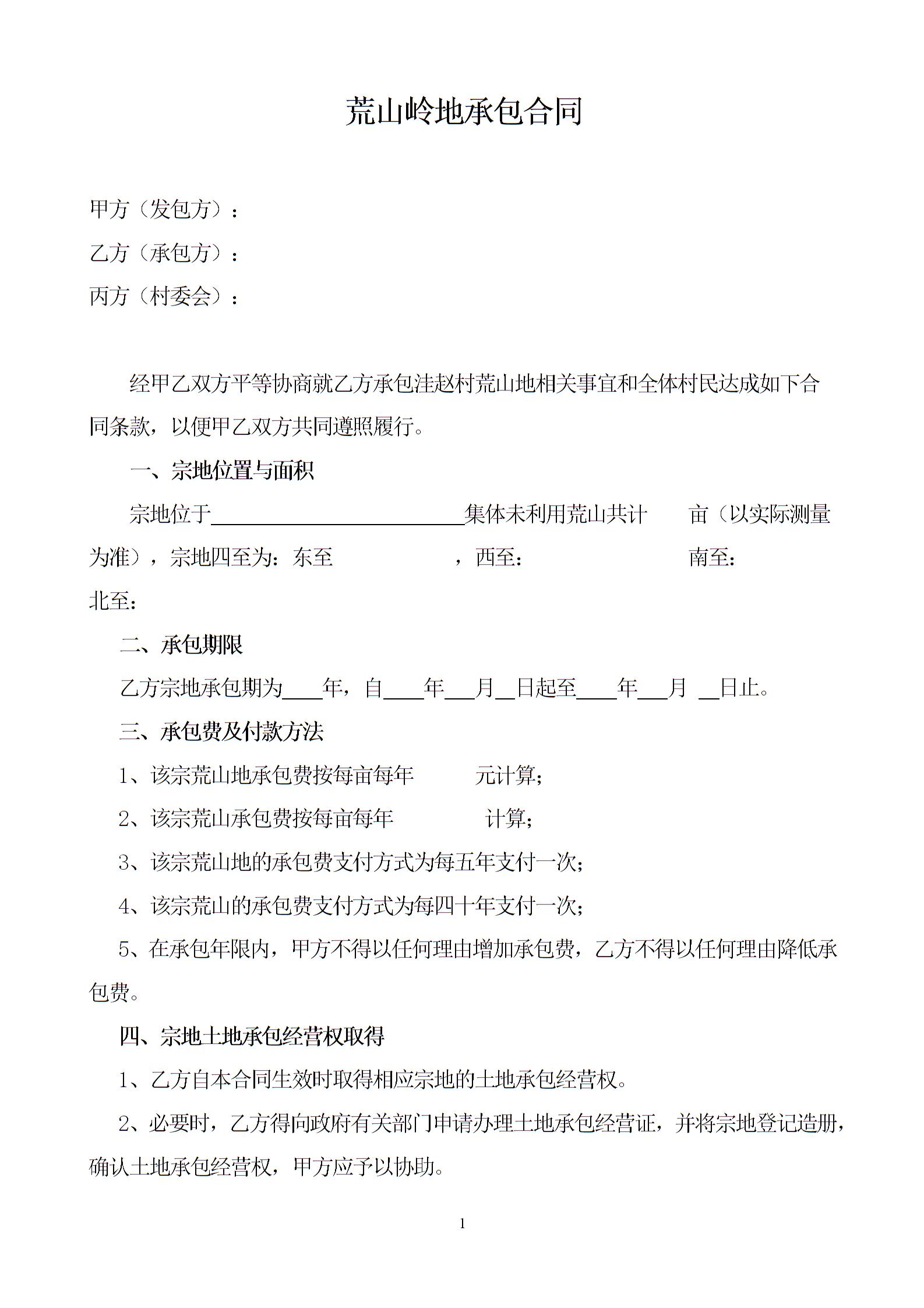荒山岭地承包合同