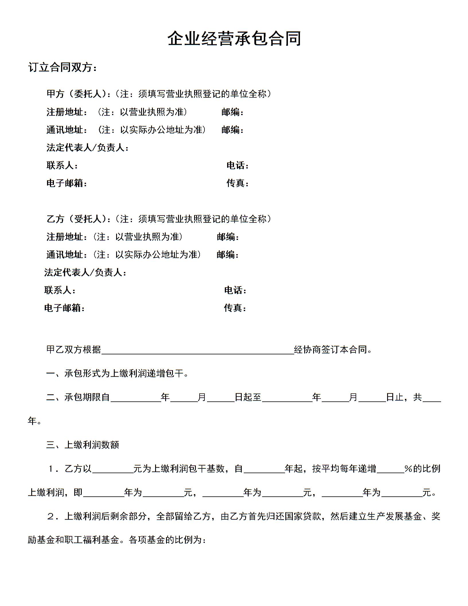 企业经营承包合同