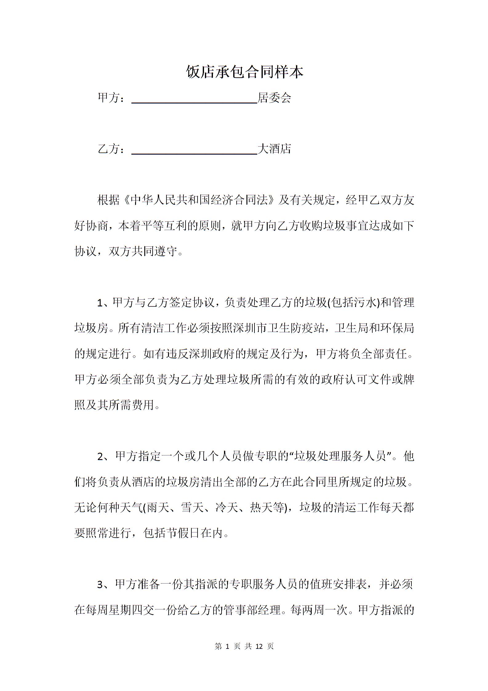 饭店承包合同样本_1