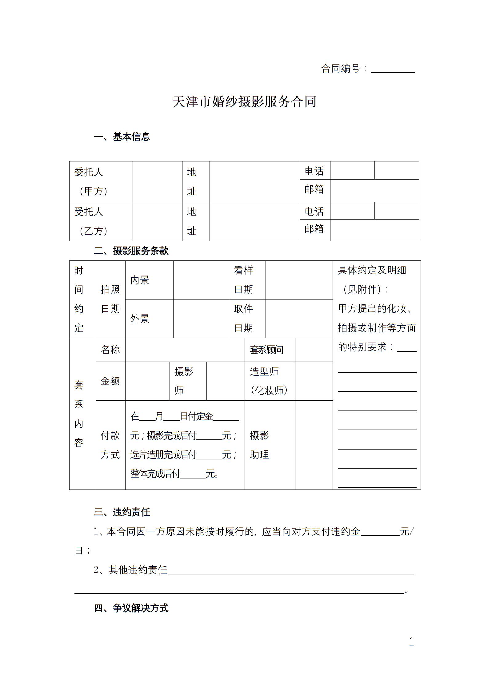 天津市婚纱摄影服务合同