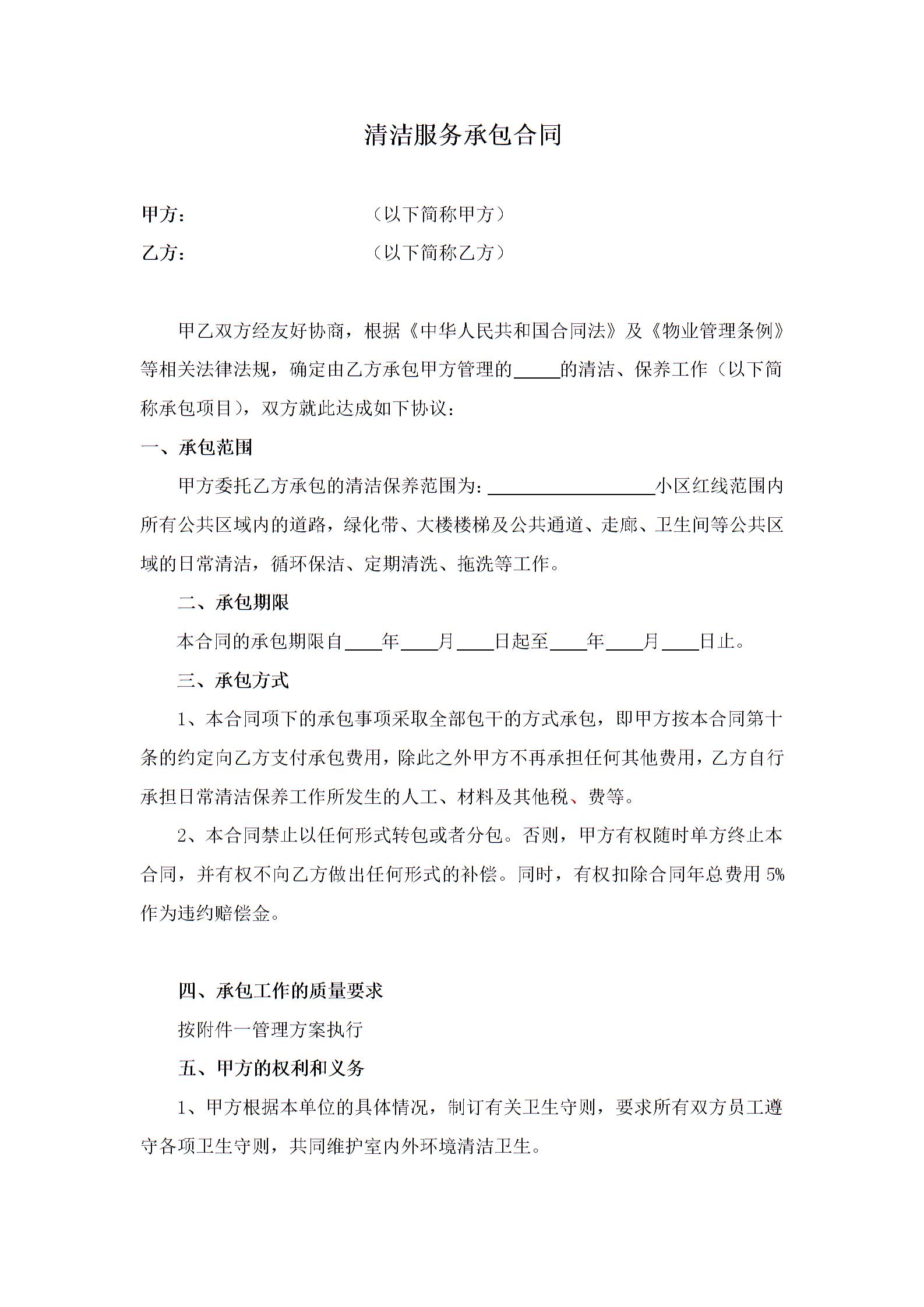 清洁服务承包合同1