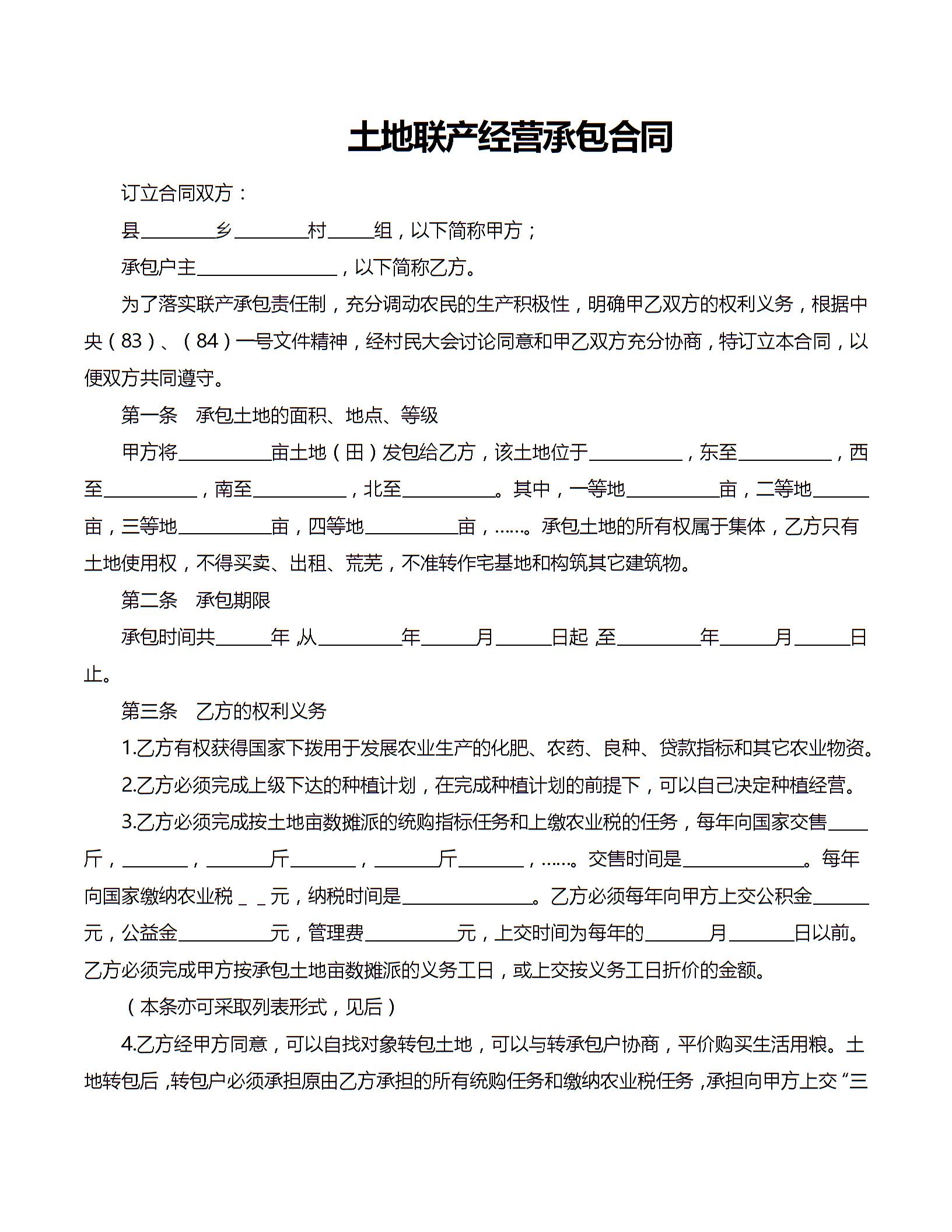 土地联产经营承包合同范文