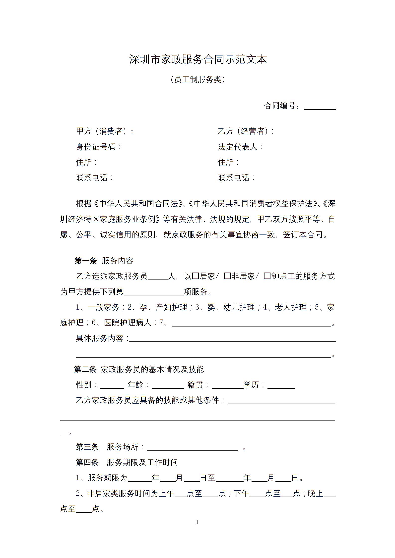 深圳市家政服务合同示范文本