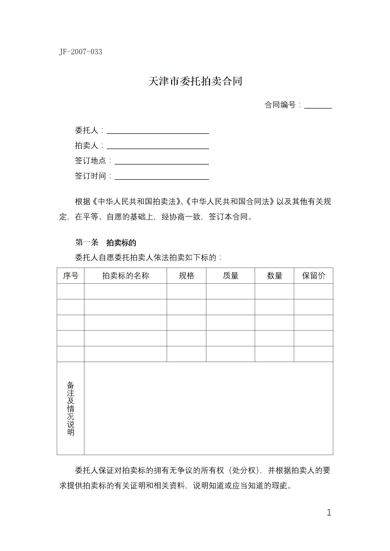 天津市委托拍卖合同