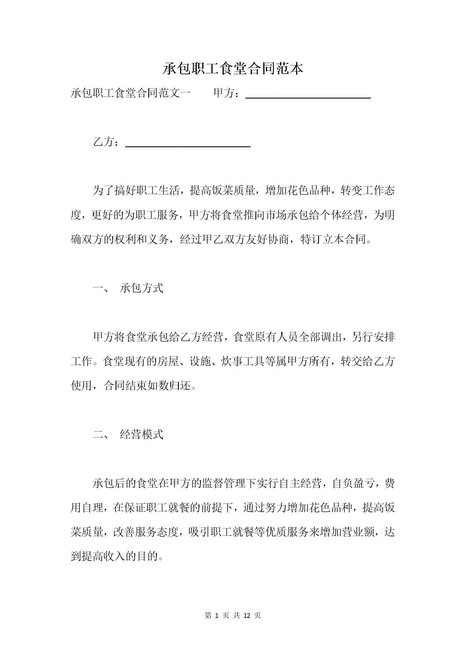 承包职工食堂合同范本