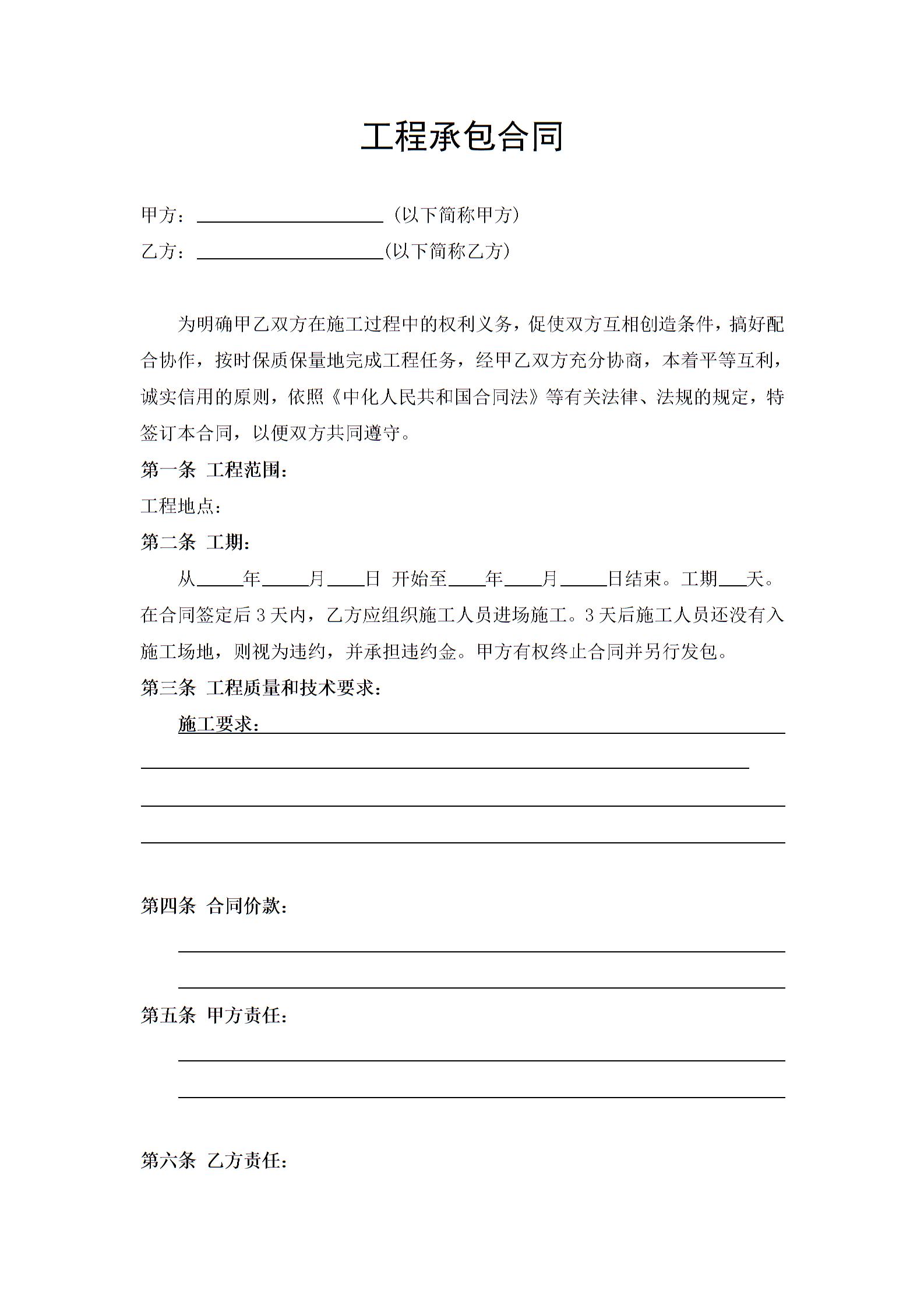 工程承包合同(通用)
