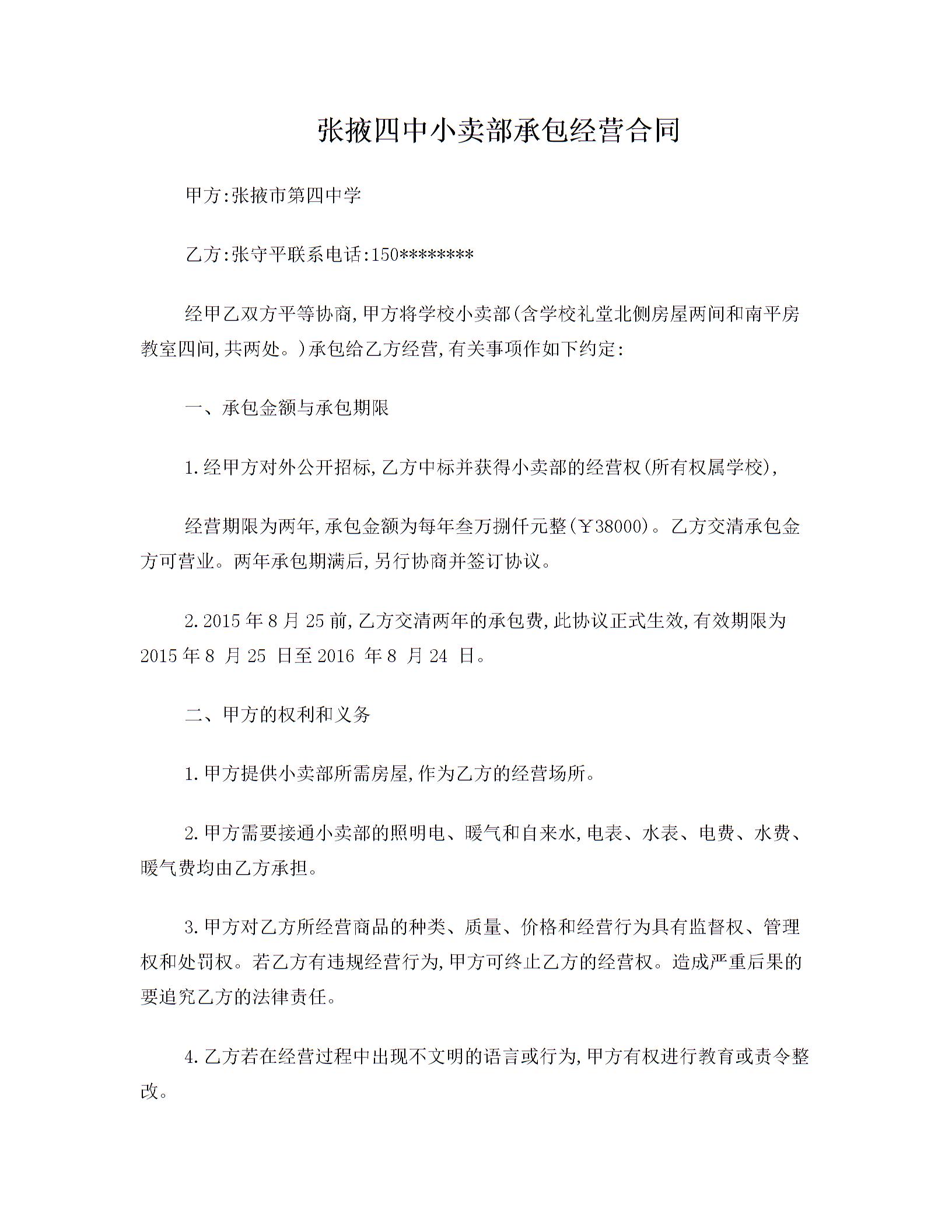 小卖部承包经营合同